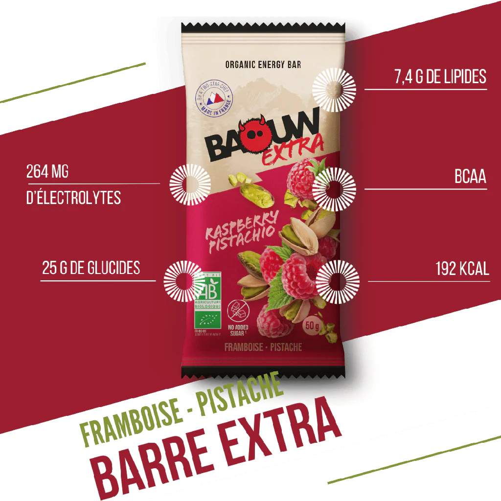 La barre énergétique Baouw Framboise & Pistache est une collation naturelle et gourmande, parfaite pour apporter une énergie progressive avant ou pendant l’effort. Son mélange subtil de fruits et d’oléagineux bio garantit une digestion optimale et un apport en nutriments essentiels pour soutenir la performance.