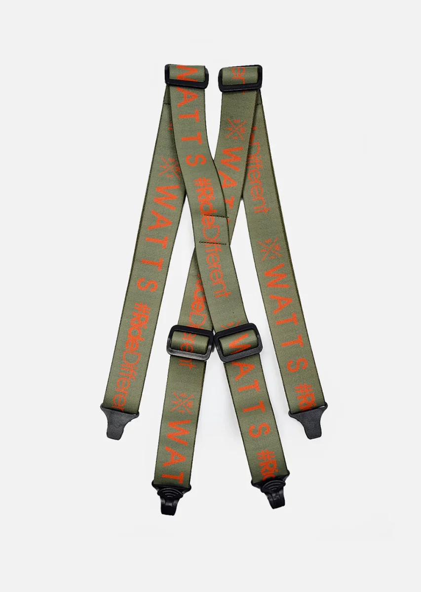 La longueur totale de 100 cm (45 cm devant, 15,5 cm derrière) permet un ajustement précis et confortable. Le branding contrasté WATTS + #RideDifferent en orange fluo renforce l’identité visuelle de la marque tout en ajoutant une touche de modernité à l’ensemble.