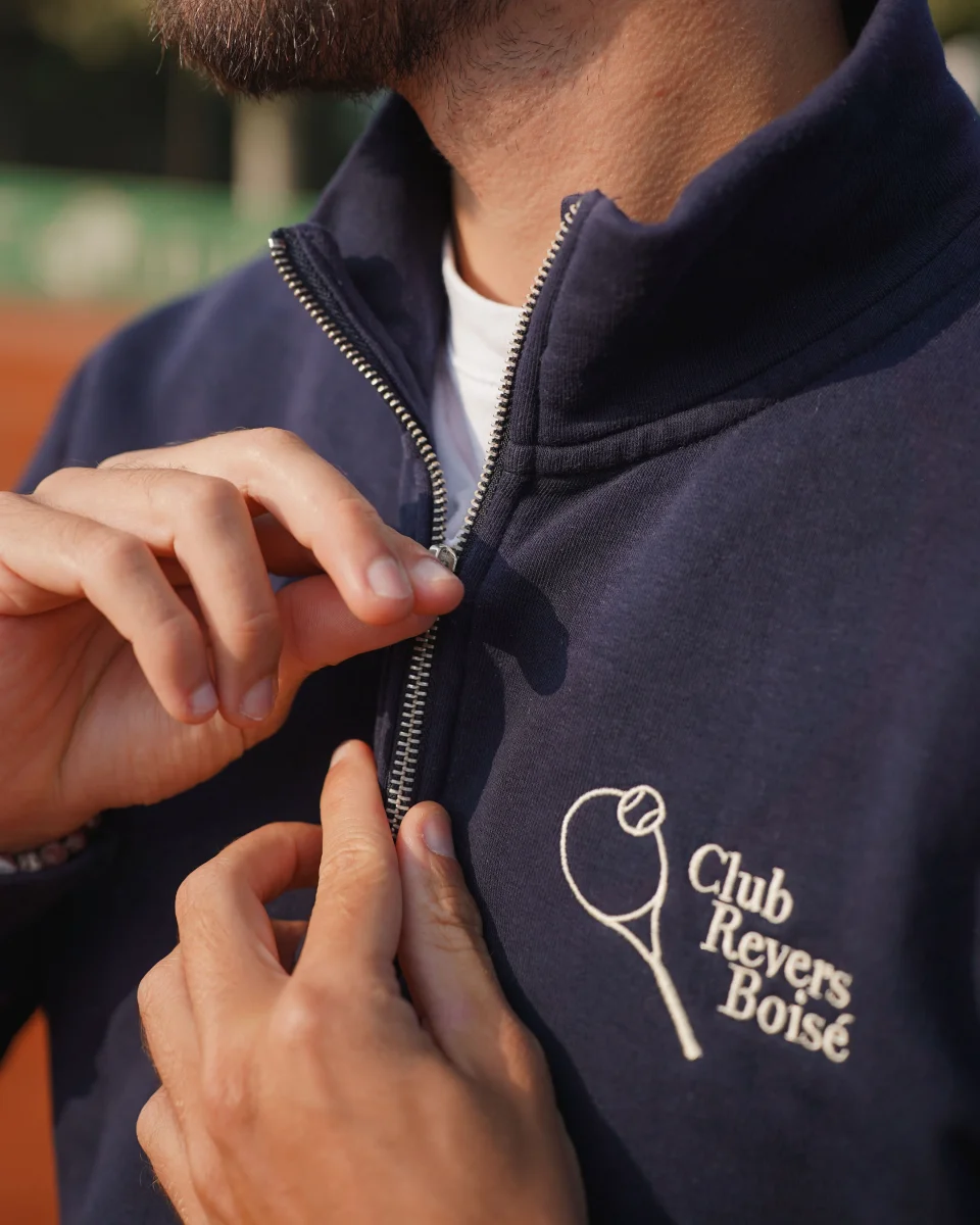Transforme ta garde-robe avec ce pull col camionneur bleu marine, une pièce indispensable de ta collection Revers Boisé.