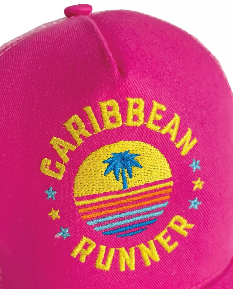 Cette casquette est 100% coton devant avec le logo Caribbean Runner brodé en multicolore.