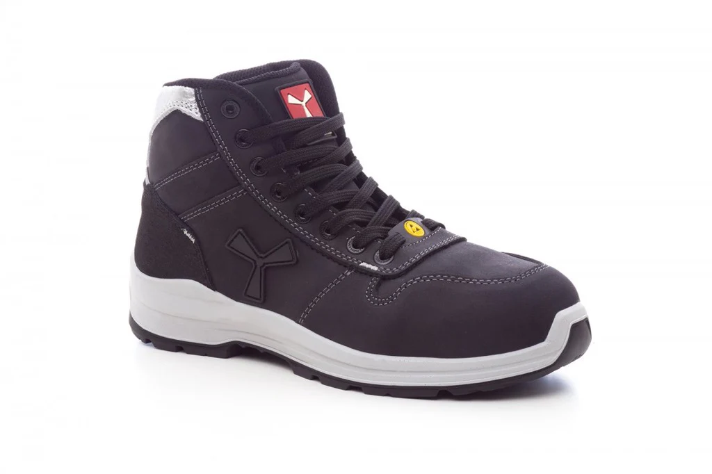 Chaussure de sécurité moyenne pour femme, tige en cuir hydrofuge et respirant, doublure interne (sur toute la surface interne) respirante et résistante à l’abrasion, 8+8 œillets metalfree, contrefort en grain pampas avec insert réfléchissant, embout en aluminium pressé, orthèse plantaire amovible Ortholite X40 016 ESD, semelle en feuille textile certifiée anti-perforation, cambrion anti-entorse, bout dur en fer à cheval, première de montage en polyuréthane ultra-léger ESD, amortisseur MASTER BALANCE en PU polyéther à haute ténacité et densité équilibrée, semelle extérieure XTRAIL GRIP en TPU ESD avec contrefort et bout dur.
