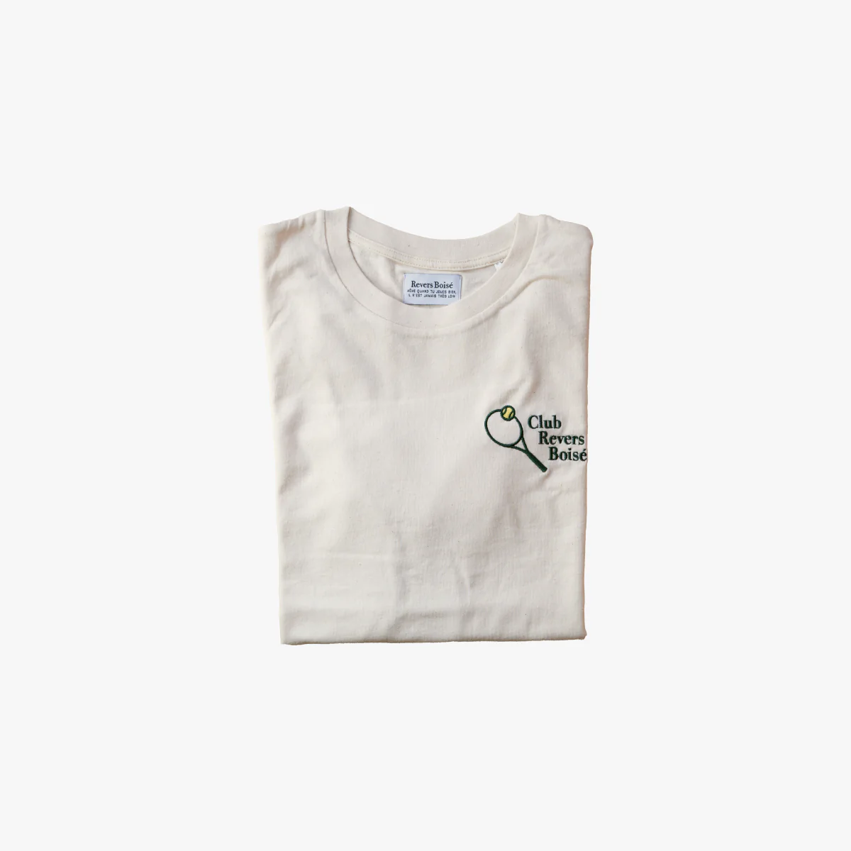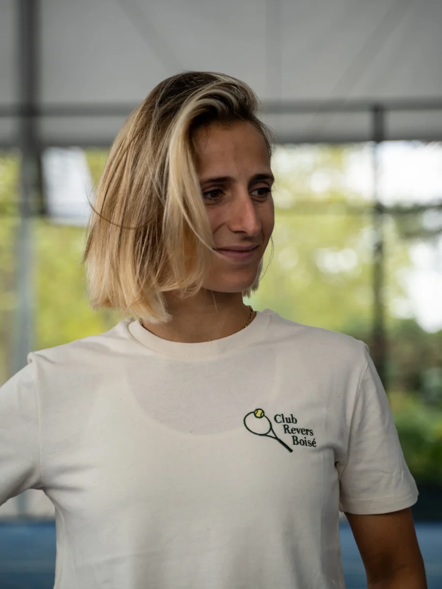 Le Club est un tee-shirt unisexe en coton biologique non teint, à la teinte crème subtile et à la broderie signature Revers Boisé. Un essentiel intemporel, pensé pour le quotidien comme pour les jours de match.