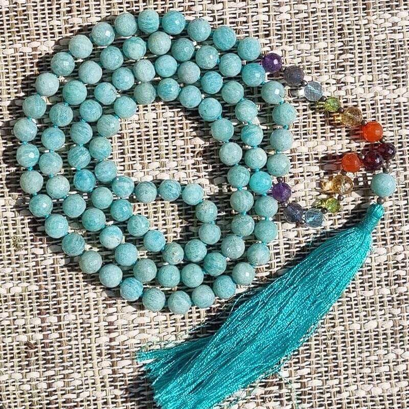 Collier mala Amazonite 108 perles AA facettées – 7 chakras