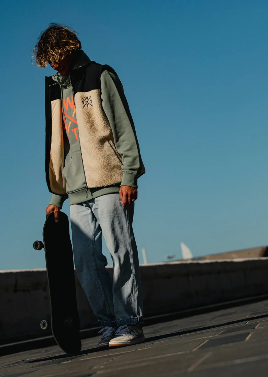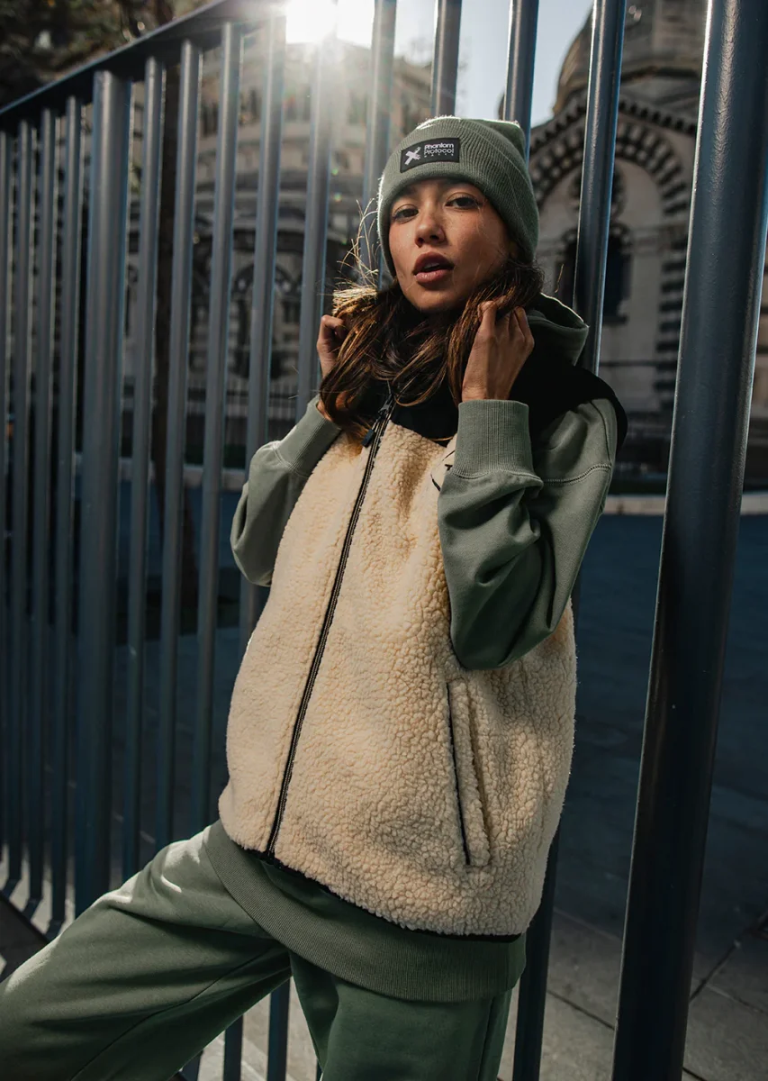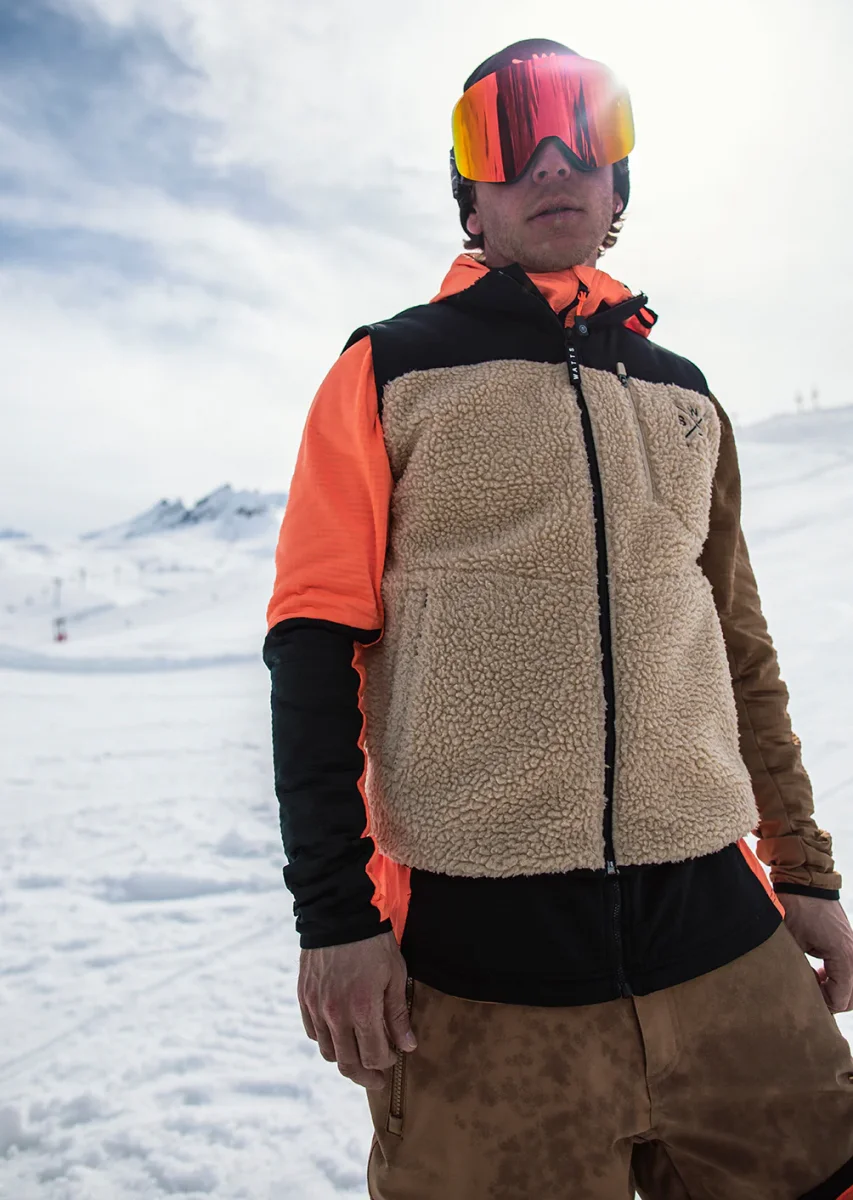 Avec sa teinte Beige et ses découpes contrastées, le gilet sherpa X-Row s’impose comme un incontournable de mi-saison et d’hiver.