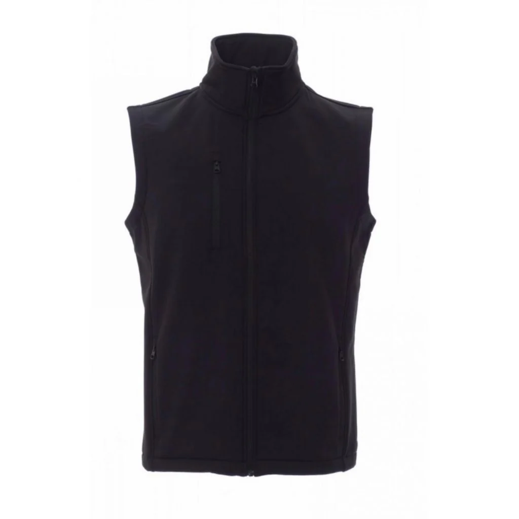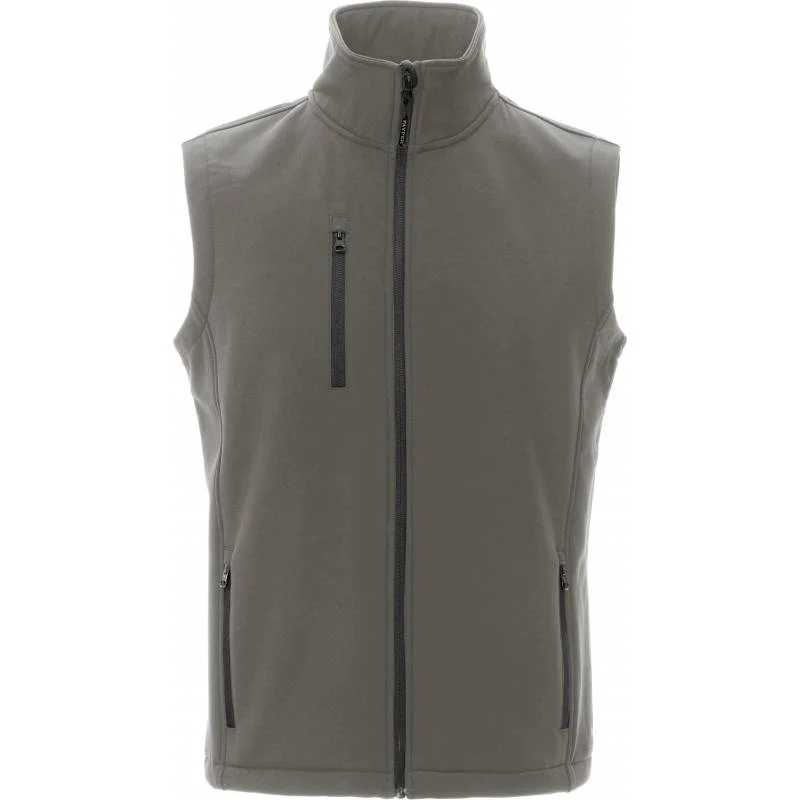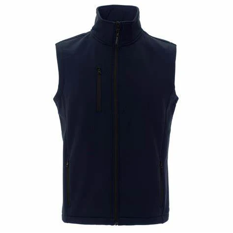 Gilet ergonomique à double épaisseur, traitement water repellent, avec un zip long, deux poches latérales zippées, une poche sur la poitrine, coulisse à la taille.