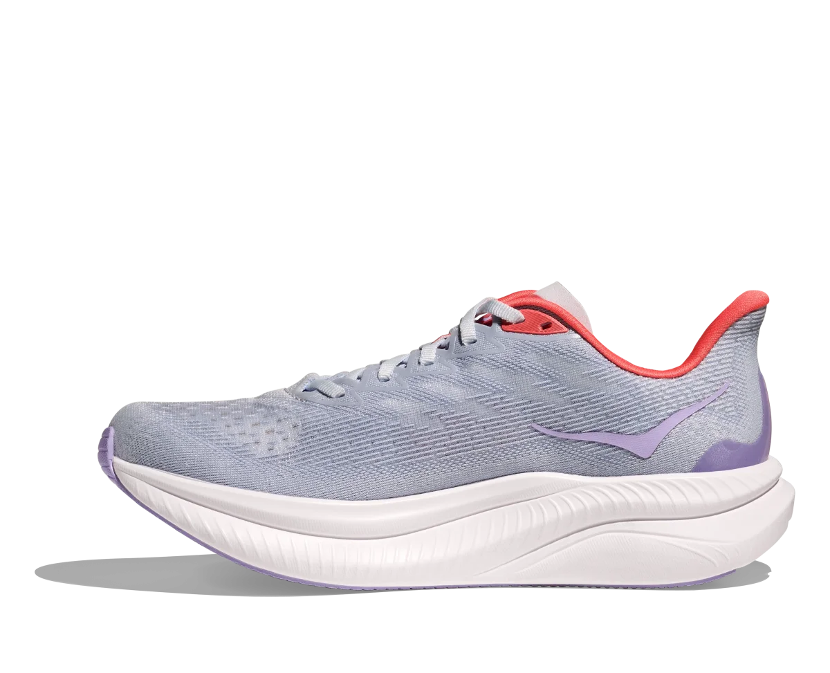La Hoka Mach 6 est la chaussure idéale pour les coureuses en quête de légèreté, de dynamisme et de réactivité. Conçue pour les compétitions et les entraînements rapides, elle vous permet de pulvériser vos chronos grâce à sa nouvelle mousse supercritique et son design affiné.