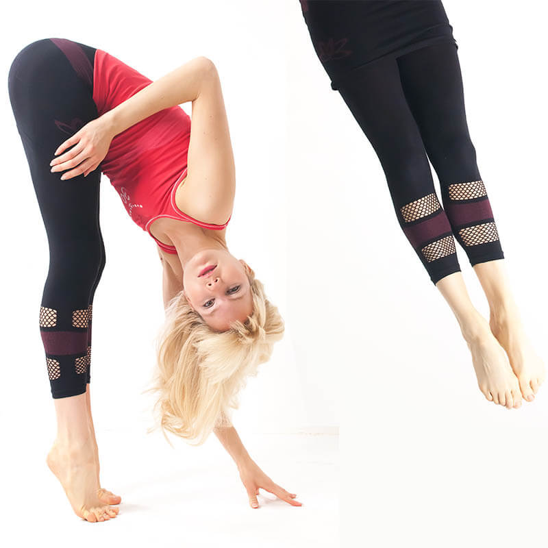Tissu dernière technologie de mèche, riche en coton bio, sans couture. Excellent pour les étirements, extensions et inversions de toutes sortes.