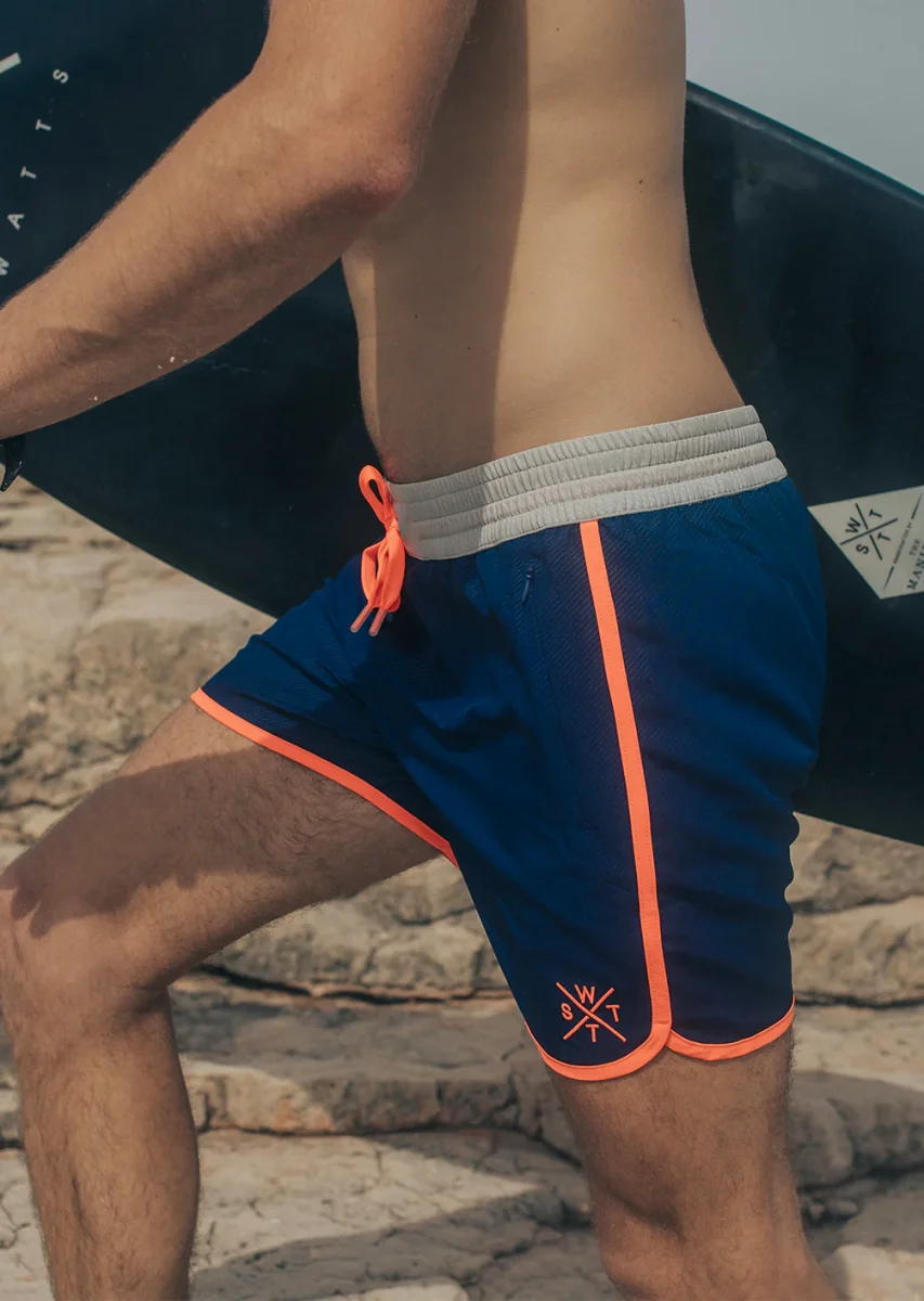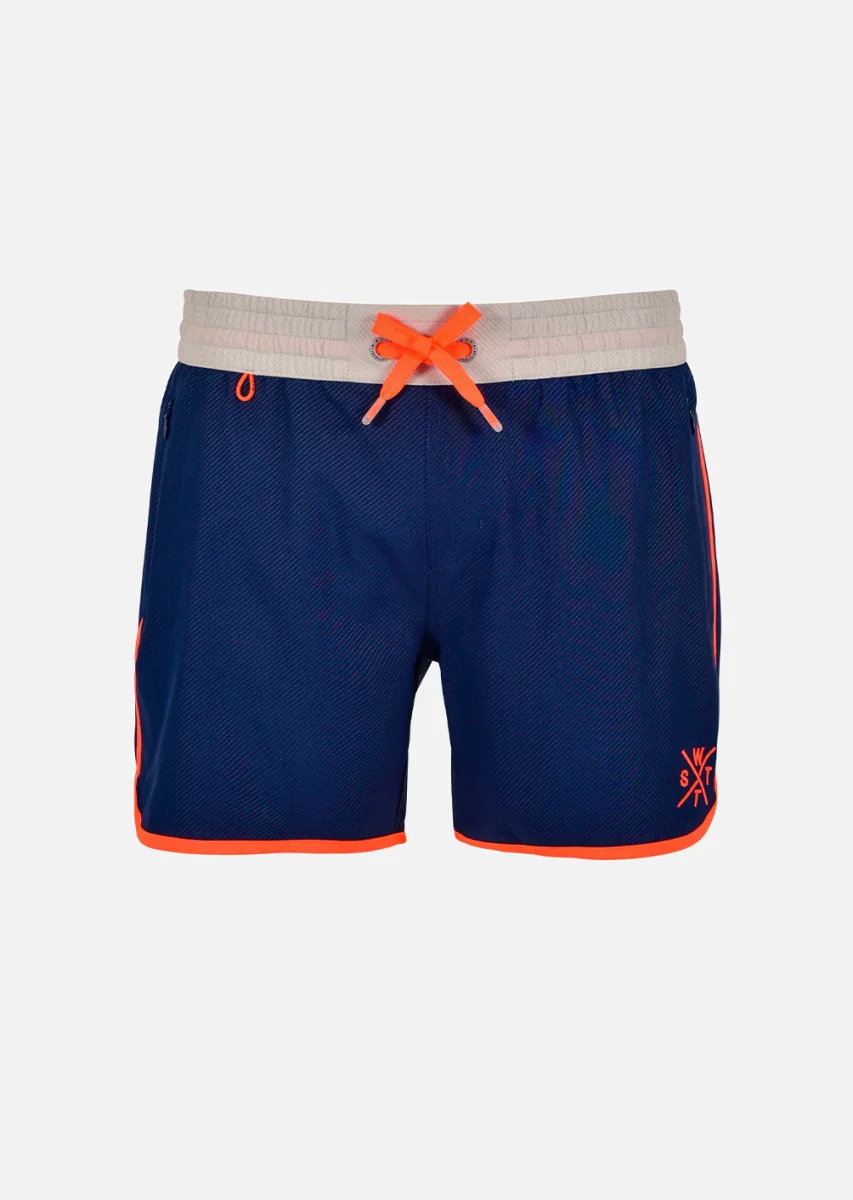 Hyper tendance, voici le maillot de bain Bali Bleu Marine. Doté de la technicité 4 Way Stretch, ce maillot vous offre une facilité de mouvement que vous adorerez. Orange fluo et bleu marine, ce sont des couleurs qui s’accordent à merveille. Vous pouvez assortir le maillot avec nos casquettes pour des looks 100% WATTS. Grâce à la technicité de séchage rapide, vous serez vite sec en sortant de l’eau pour davantage de confort.