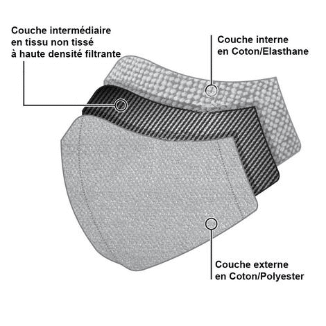 Matière Non tissée a haute densité : 75%PES/25% VSC – Couche extérieure en coton / polyester couche intérieure 95% coton et 5% élasthanne un filtre non tissé dense est cousu au milieu Lavage 60 °.