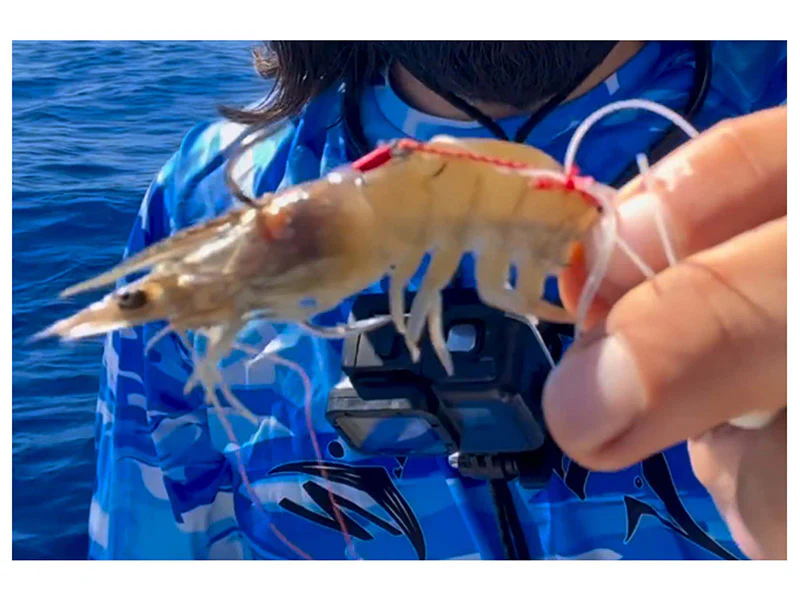 Il s’agit de combiner l’utilisation d’un leurre et d’un petit appât naturel, comme une crevette, une gambas ou des lanières de calamars/seiche.