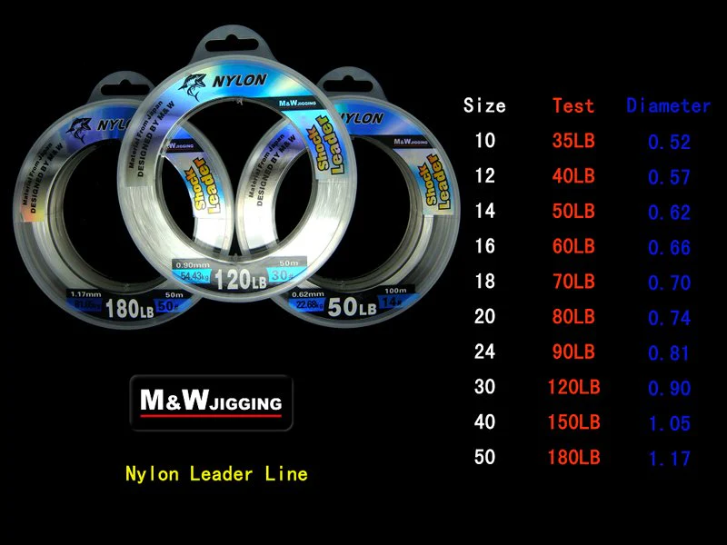 Nylon Leader Line M&W destiné aux pêches fortes, et spécialement conçu pour les bas de ligne Résistance à l’abrasion et absence de mémoire Sa texture est suffisamment douce pour réaliser des nœuds de gros diamètres et y conserver une excellente résistance