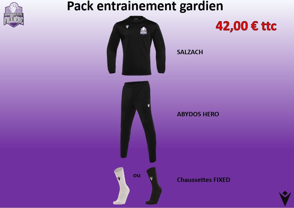 Ce pack comprend : Haut de survêtement SALZACH noir Pantalon entrainement ABYDOS HERO noir Chaussettes FIXED noir ou blanche au choix Attention veuillez cocher toutes les cases pour finaliser votre commande , merci