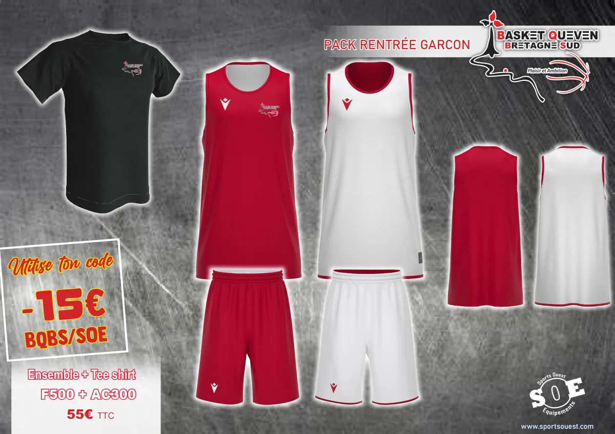 Ce pack comprends : un ensemble réversible maillot / short Macron rouge/blanc, logo club inclus un tee shirt Technique AC300 noir Taille : du 3XS au 3XL – cliquez sur ce lien : Size Guide | Work Hard. Play Harder | Macron Modèle fille ou garçon
