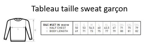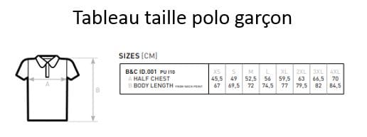 Attention le polo taille plus grand que le sweat , vous pouvez consulter le tableau des tailles ci-contre.