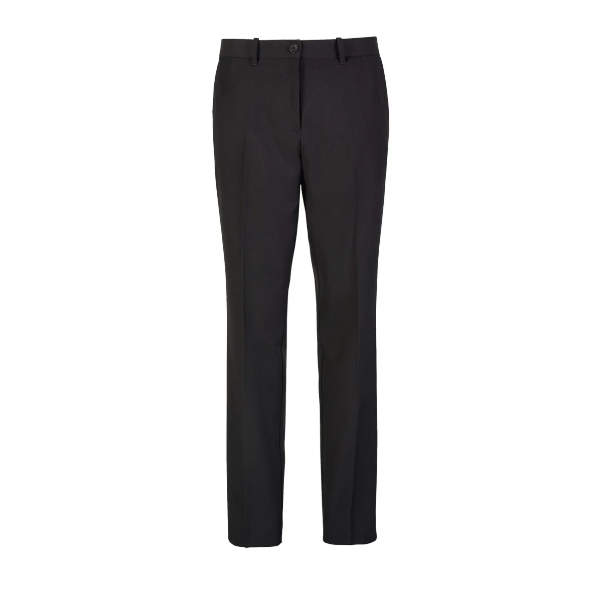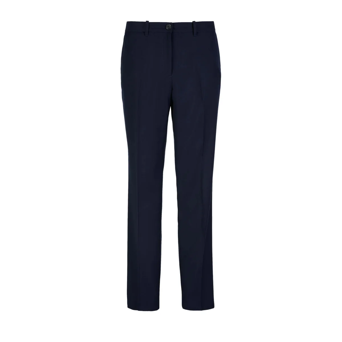 Fermeture à glissière et boutonPassants pour ceintureCeinture élastiquée2 poches frontales à l’italienne2 poches dos passepoilées2 pinces dos 66% polyester – 34% viscose Noir profond – Bleu nuit – Anthracite chinéTaille : du 34 au 58