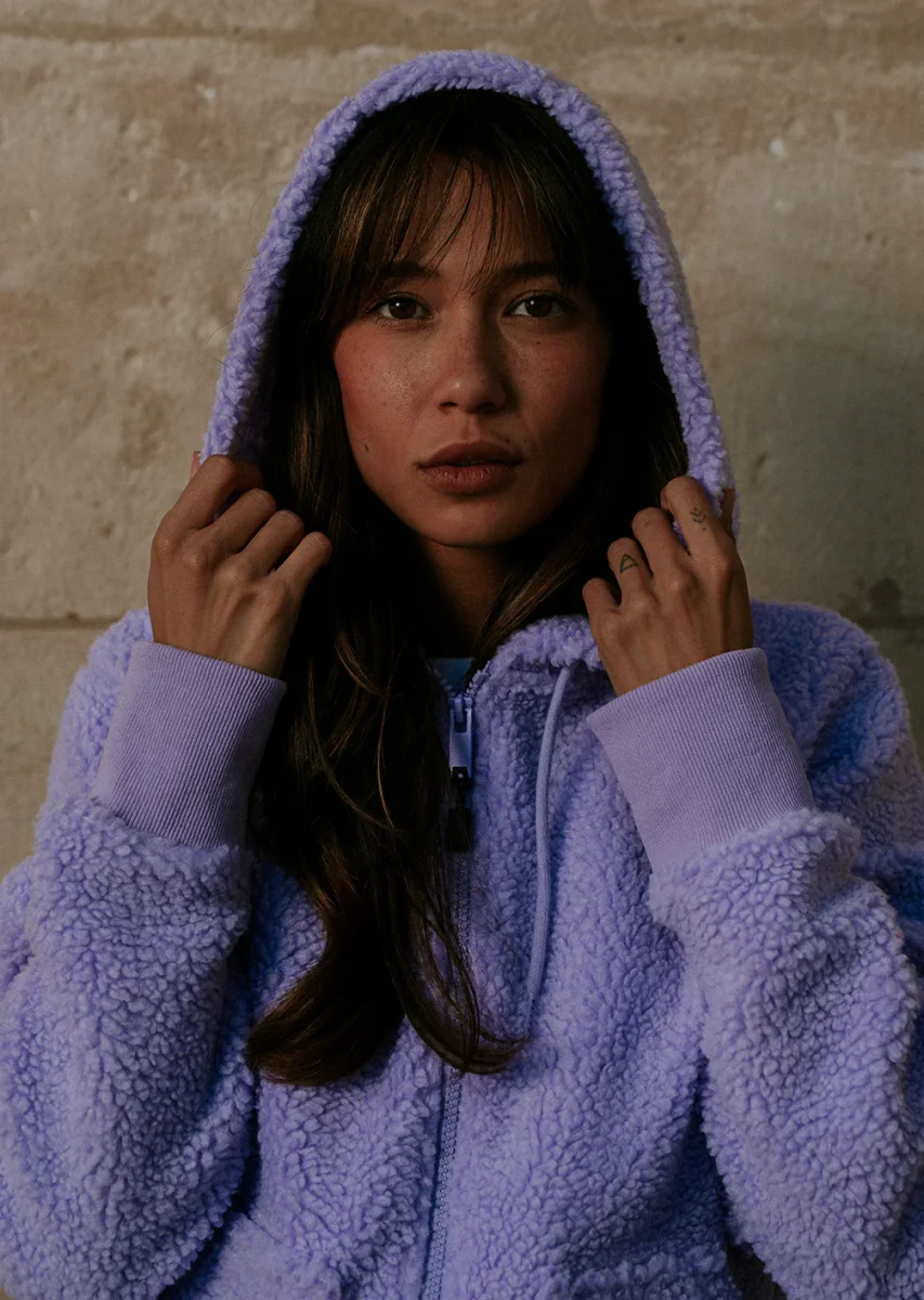Fabriqué en sherpa recyclé haute qualité, il offre une chaleur maîtrisée et un confort enveloppant, sans jamais alourdir la silhouette. Son toucher duveteux contraste avec son look street affirmé, créant une pièce à la fois technique, cosy et stylée — l’essentiel de la garde-robe urbaine féminine.