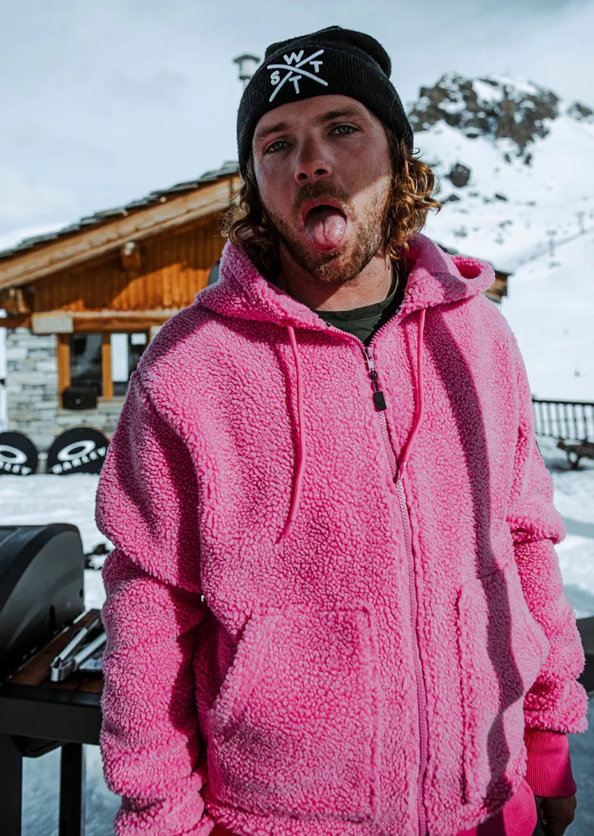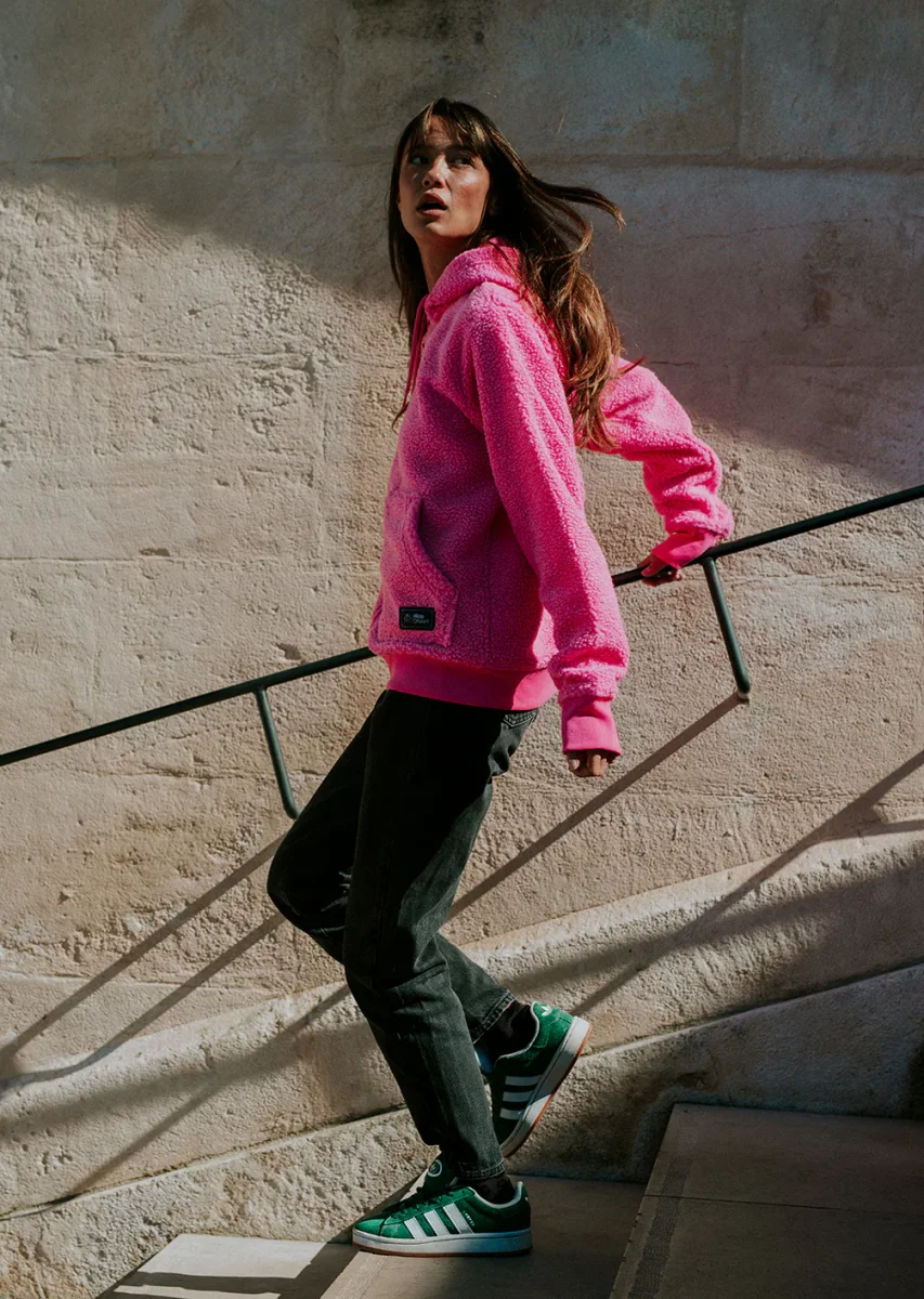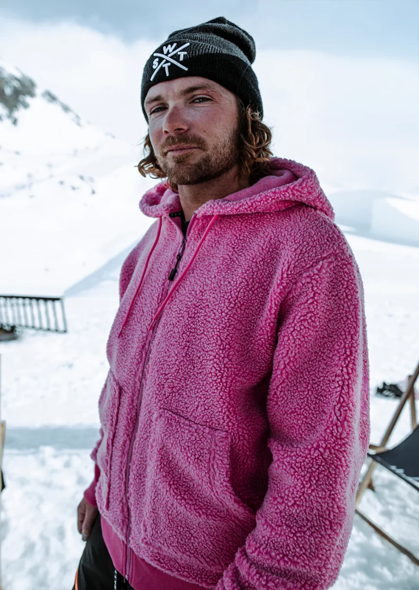 Conçu en sherpa recyclé premium, il garantit une isolation efficace tout en restant ultra-moelleux au toucher. C’est la pièce cocon indispensable : chaude mais respirante, enveloppante sans perdre en structure — idéale pour les sessions fraîches, les trajets matinaux ou les journées chill.