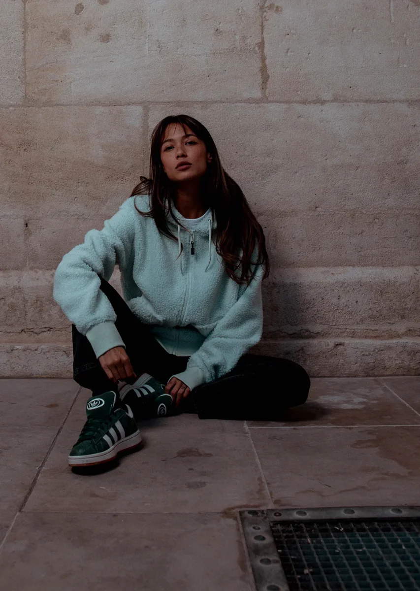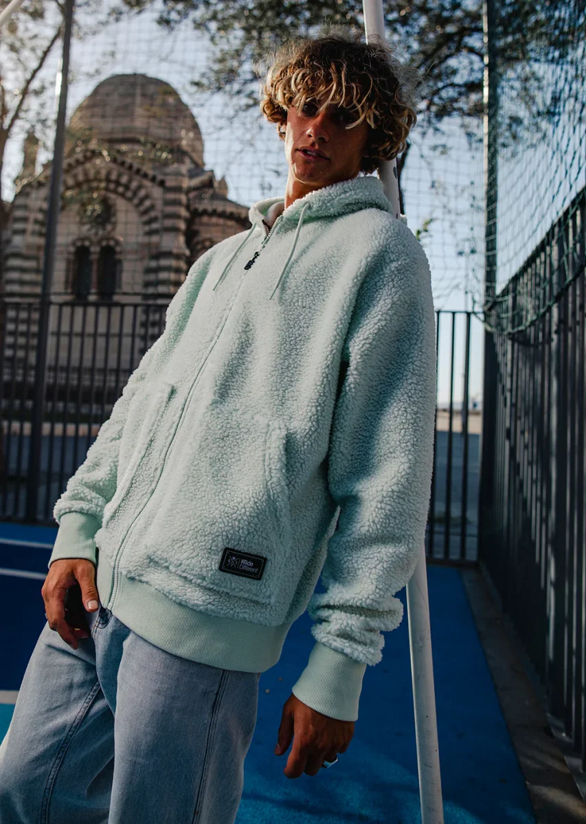 Le hoodie X-BLOCK Vert Clair s’impose comme une alternative originale et pleine de fraîcheur au sein de la collection. Sa teinte pastel légèrement givrée apporte un souffle visuel doux et contemporain, tout en contrastant subtilement avec la texture fluffy du sherpa recyclé.