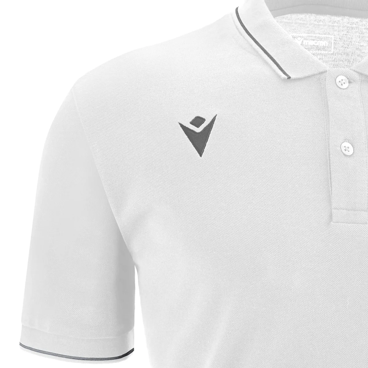 Polo COMEDY Macron, blanc, logo club inclus. 100% COTON DURABLE + Polo à 2 boutons avec col en tricot+ Poignets en tricot+ Fentes latérales Taille : du 3XS au 5XL – cliquez sur ce lien : Size Guide | Work Hard. Play Harder | Macron Option marquage : rendez-vous sur Marquage – Sports Ouest Equipements.
