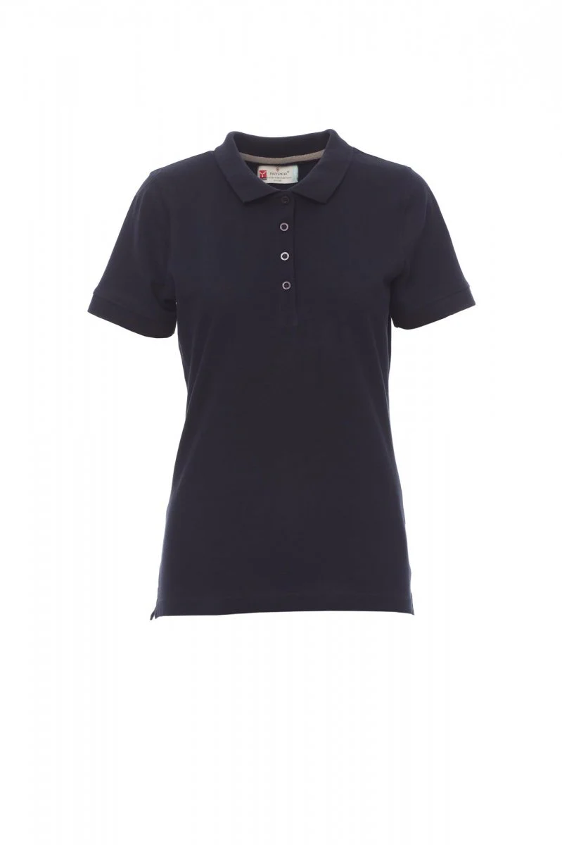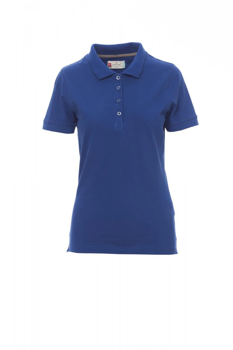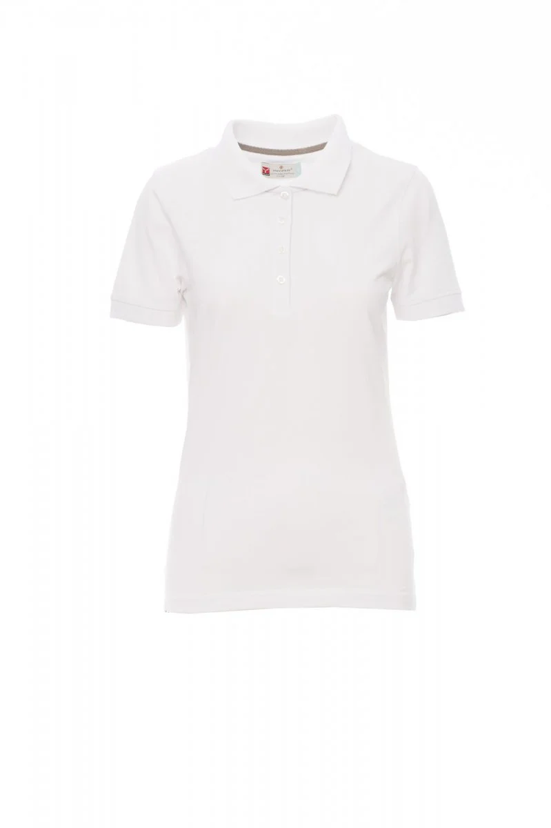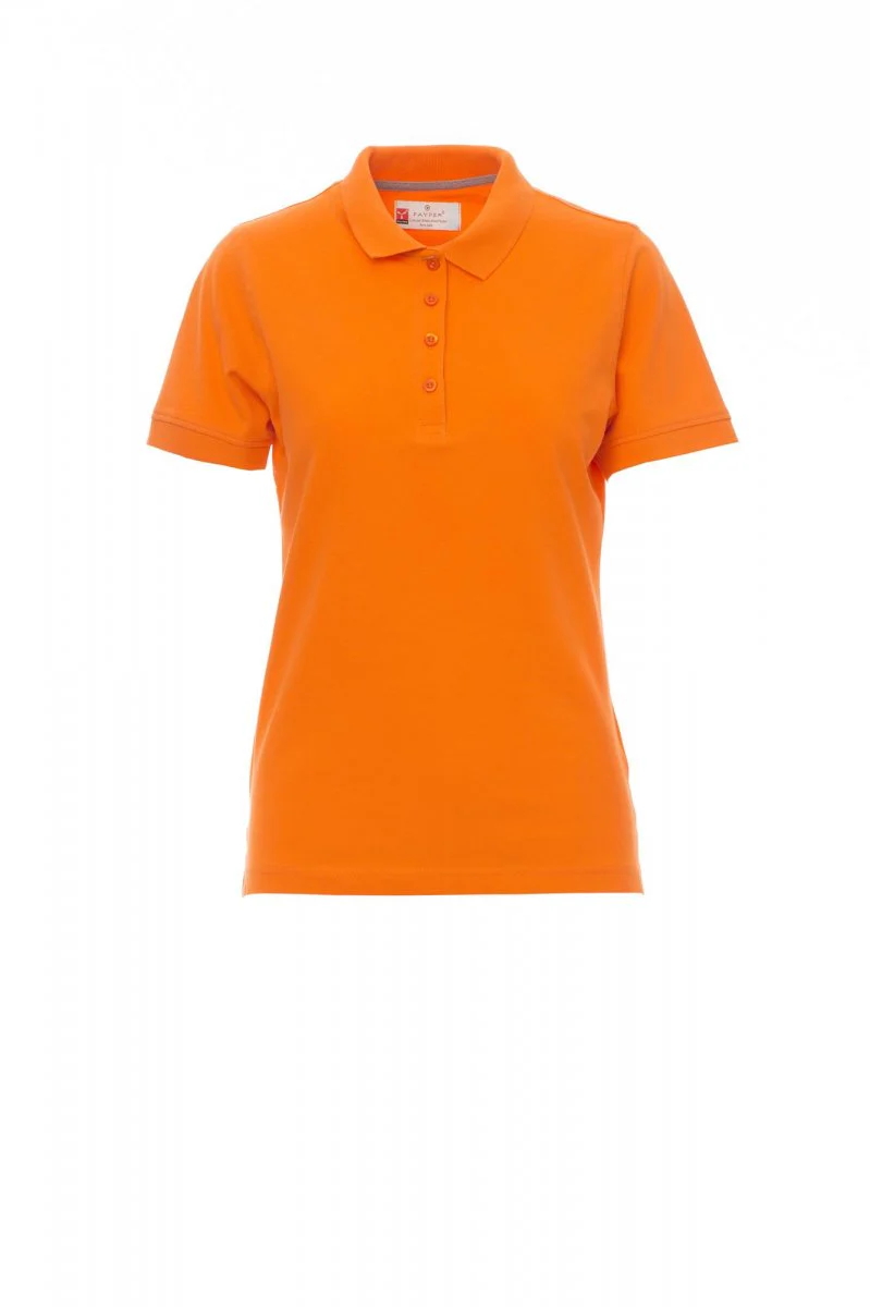 Polo cintré pour femme à manches courtes et 4 boutons assortis effet perlé, col et bordure des manches en bord côtes, fentes latérales, coutures du col couvertes avec ruban en contraste, coutures stretch, ruban de renfort latéral, renfort profilé sur encolure arrière Composition 100% COTON Aspect PIQUET Poids 200 GR/MQ