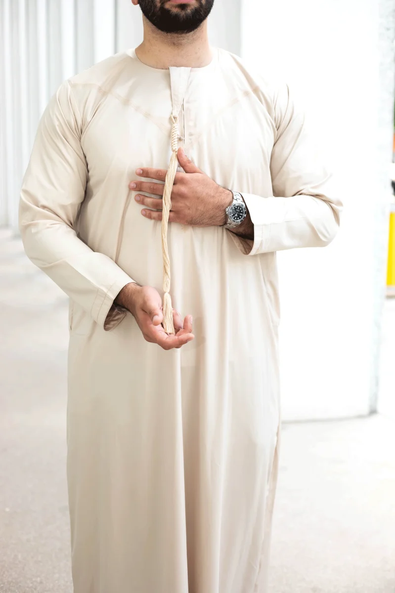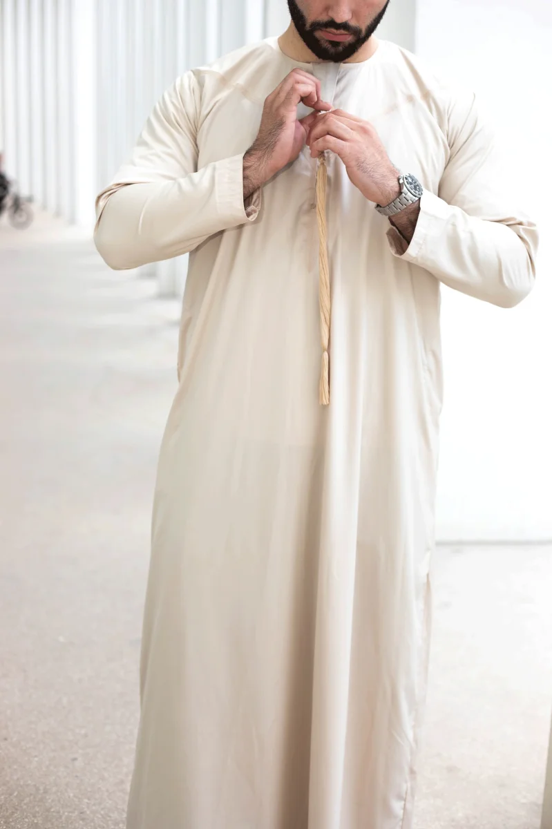 Qamis Emirati Beige Satiné – abaya homme – Kamis