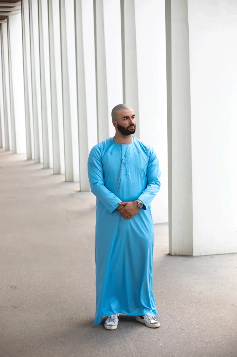 Qamis Emirati Bleu Ciel Satiné – abaya homme – Kamis
