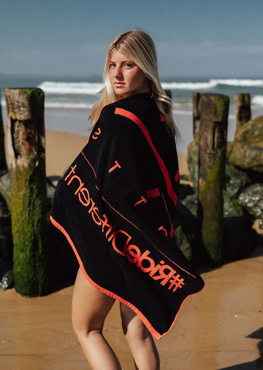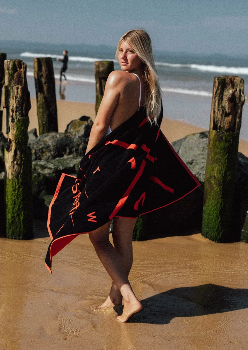 Affichez un look dynamique et audacieux avec la Serviette de Plage Wipe Orange & Noire. Son design bicolore et son 100% coton biologique jacquard vous offrent une expérience de confort supérieure avec des bouclettes sur les deux faces pour un séchage rapide.