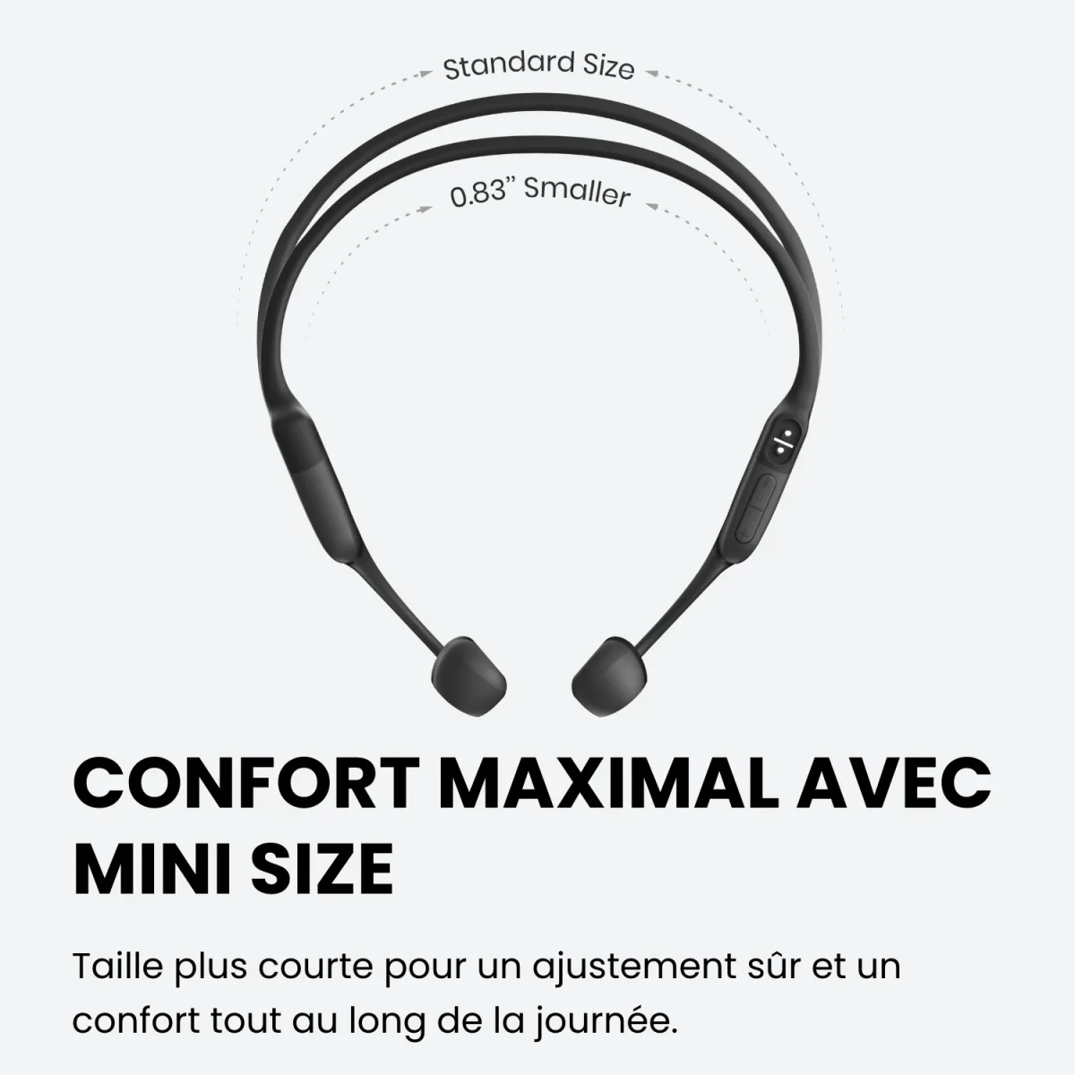 Le Shokz OpenRun Mini est un casque open-ear conçu pour les sportifs : il libère les oreilles, permet de rester attentif à l’environnement tout en écoutant sa musique ou ses podcasts. Il fonctionne en conduction osseuse, offre une autonomie de 8 heures, et une résistance IP67 à l’eau et à la poussière, idéal pour courir, pédaler ou s’entraîner en extérieur.