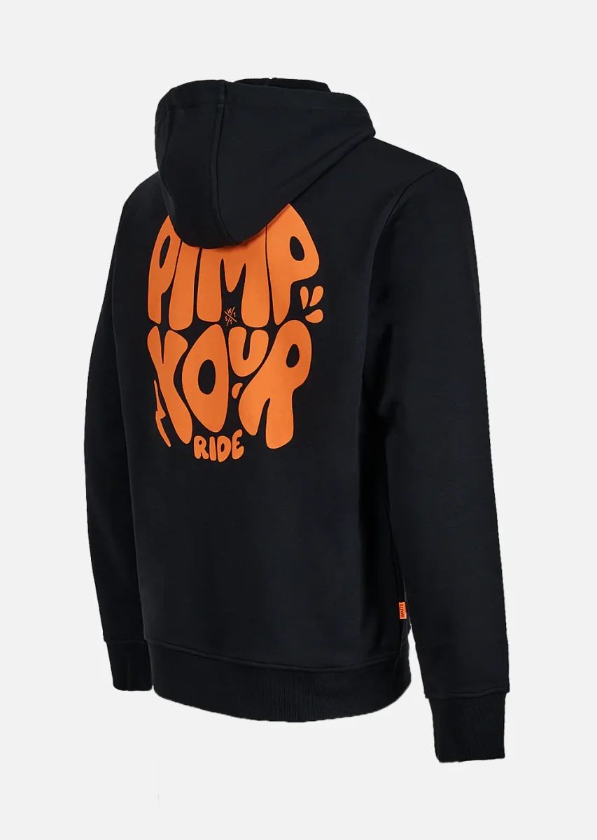 Au dos, le grand motif « PIMP YOUR RIDE » en orange fluo affirme l’ADN street et le parti pris graphique du hoodie, avec un rendu visuel percutant à chaque mouvement.