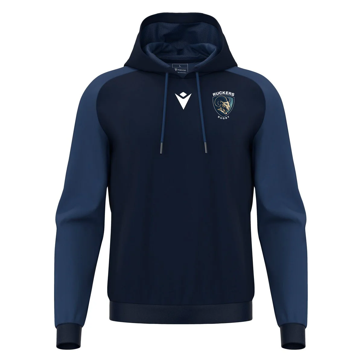 Sweat à capuche HORN Macron, bleu marine, logo club inclus.