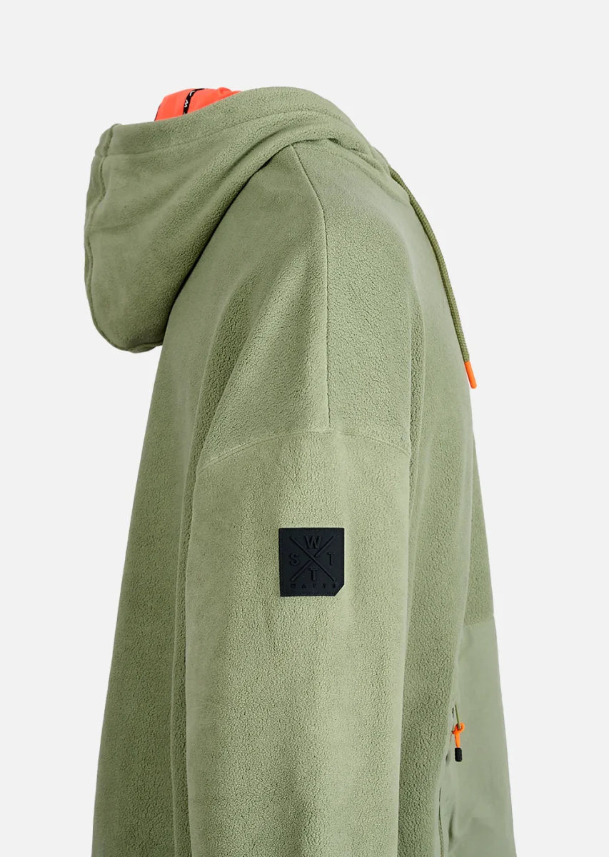 Le hoodie polaire Play Olive associe une teinte organique à un design fonctionnel, pensé pour bouger sans jamais compromettre le confort. Entièrement conçu en polaire recyclée légère, il offre une isolation douce et respirante qui accompagne chaque mouvement, que ce soit en ride, en rando ou en ville.