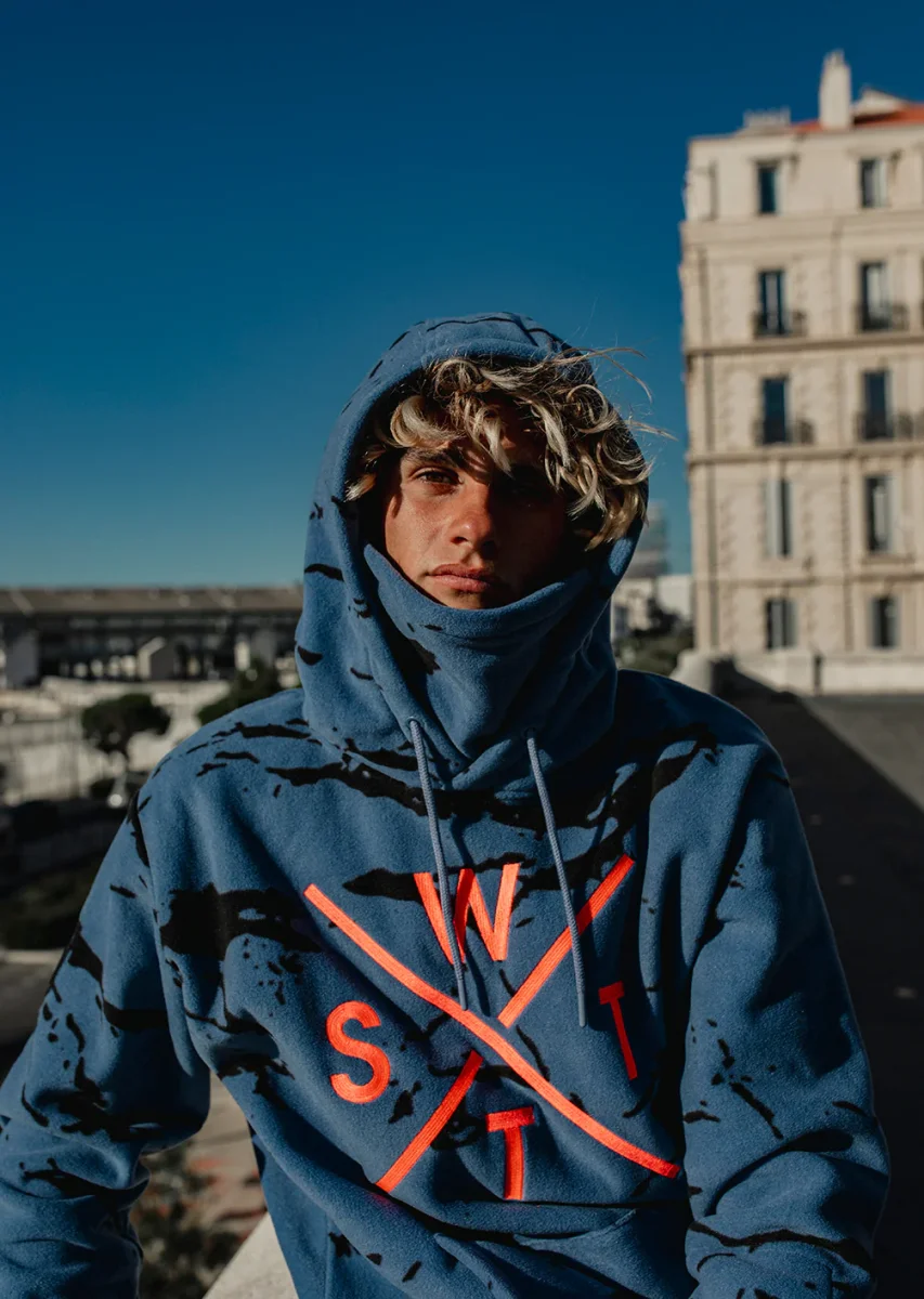 Un sweat technique au style affirmé, pensé pour celles et ceux qui gardent leur cap (ou leur capuche), par tous les temps.