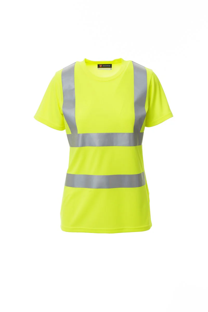 T-shirts encolure arrondie pour femme, à manche courte, haute visibilité avec passepoils réfléchissants, coutures du cou couvertes. Composition 100% POLYESTER Aspect DRY-TECH Poids 150 GR/MQ