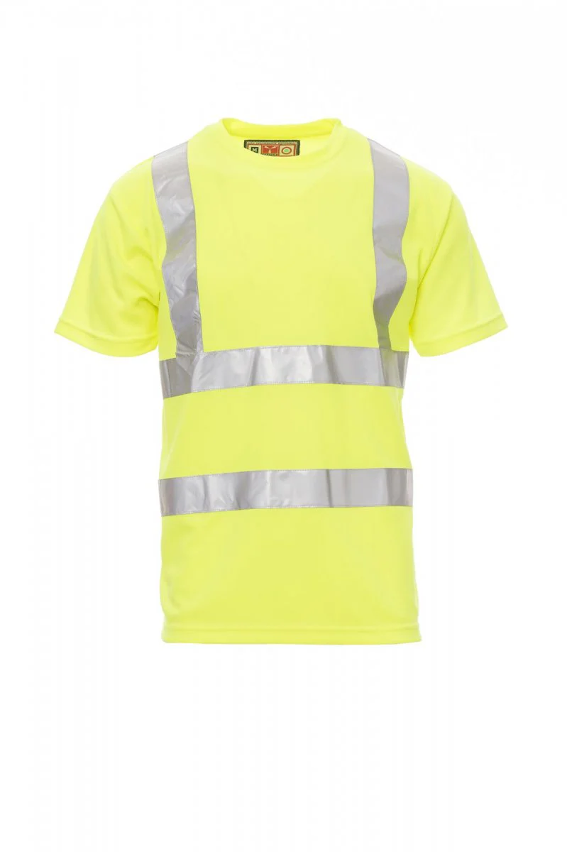 T-shirts encolure arrondie, à manches courtes, haute visibilité avec bande réfléchissantes, coutures du cou recouvertes. Composition 100% POLYESTER Aspect DRY-TECH Poids 150 GR/MQ