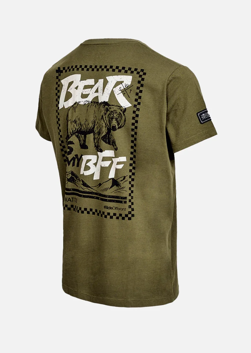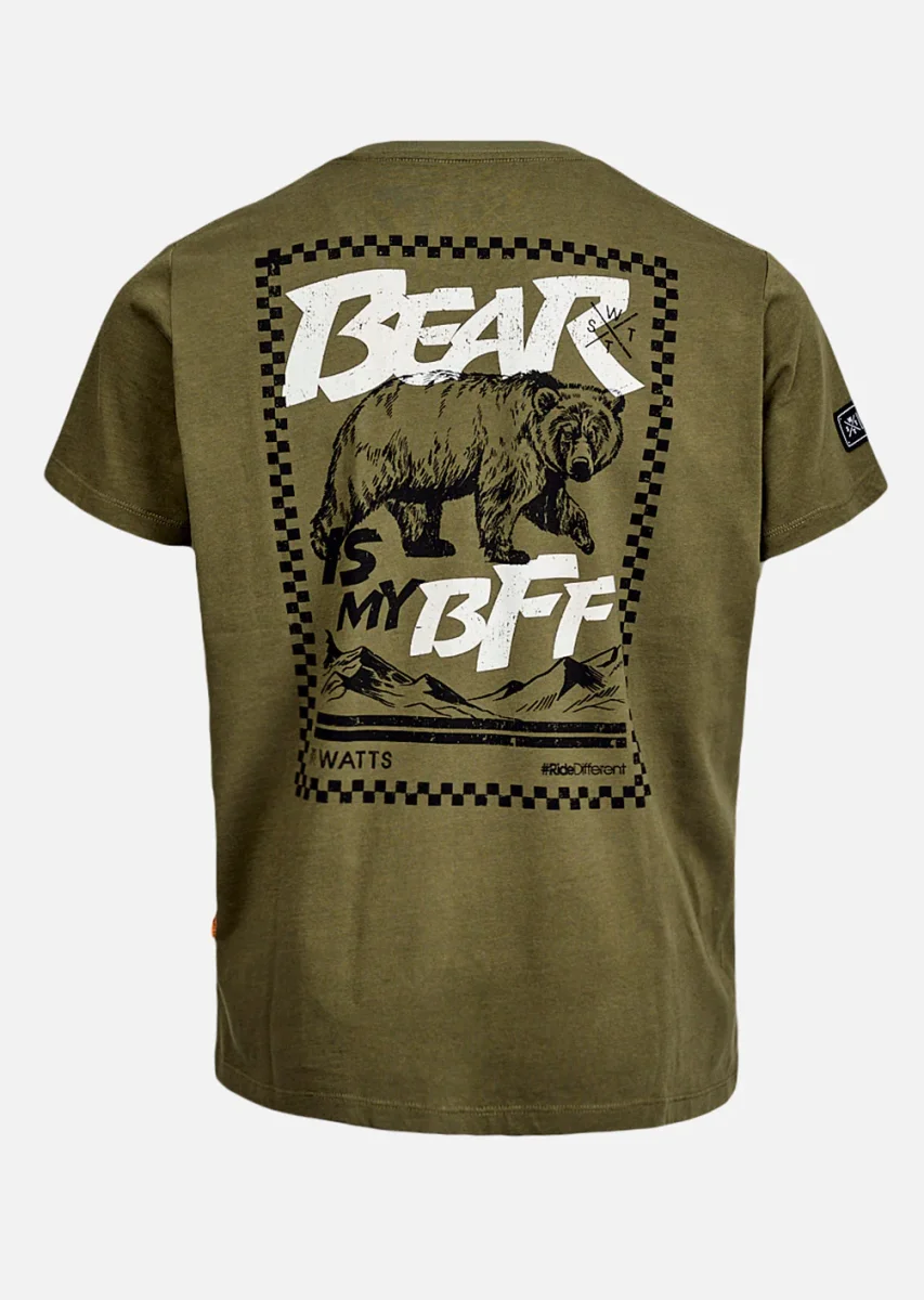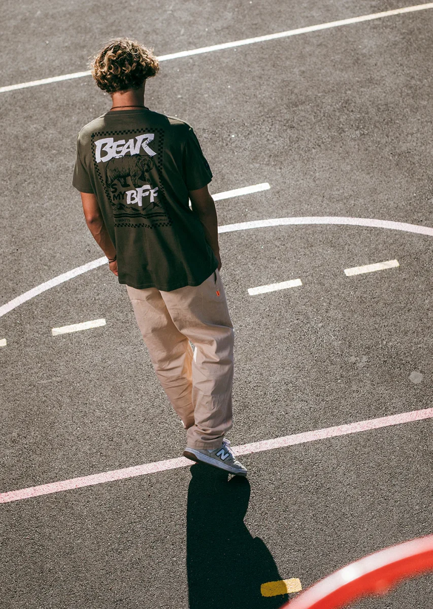 Le t-shirt Budy Kaki ancre votre style dans la vibe urbaine avec une nuance nature ultra polyvalente. Dans le dos, le motif « The Bear » prend la parole sans hausser le ton : une présence brute et graphique, taillée pour les profils calmes mais déterminés.