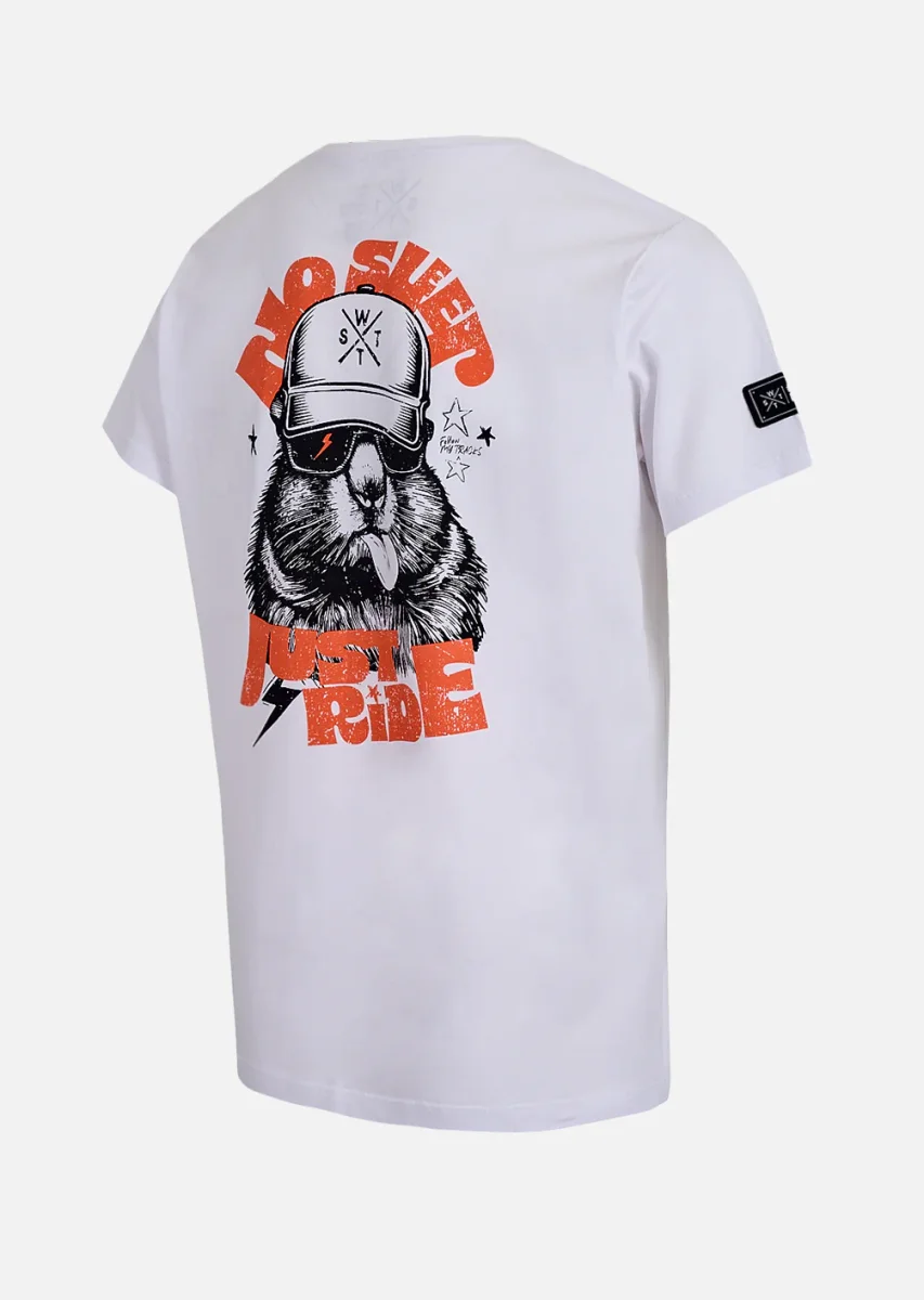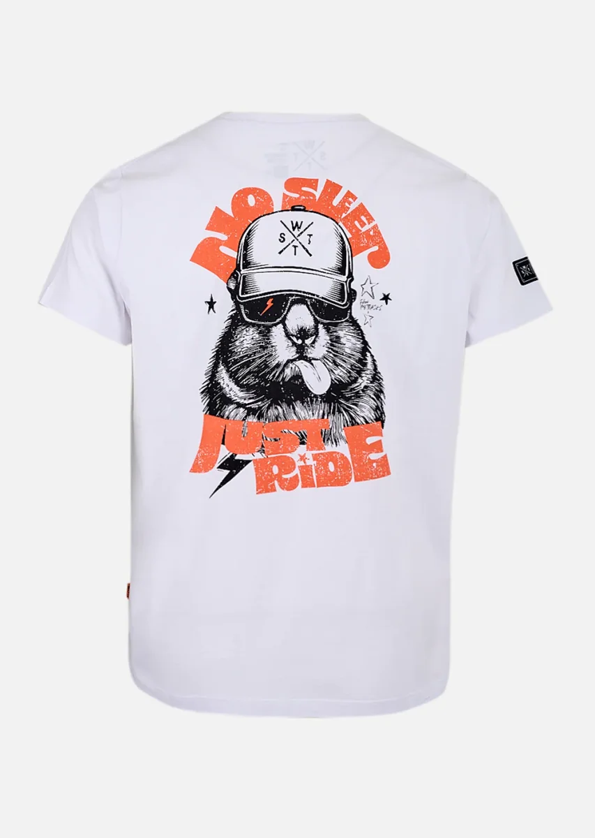 Affichez un style de rider avec ce tee-shirt Overmint Blanc signé WATTS. Confectionné en coton biologique, il offre un confort optimal et une coupe regular adaptée à toutes les morphologies. Le visuel au dos décalé représente un rongeur audacieux équipé d’un casque et de lunettes comme vous lors de vos sessions ride, accompagné du message percutant « No Sleep Just Ride ». L’avant reste épuré avec un petit logo éclaté sur la poitrine. Ce modèle est parfait pour affirmer mettre en valeur votre identité ride, que ce soit en ville, à la montagne ou au bord de l’eau.