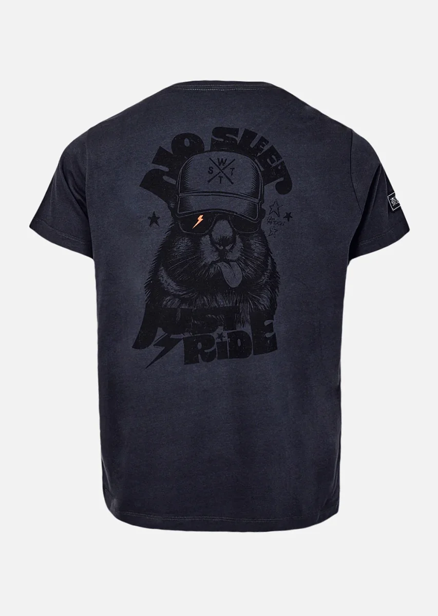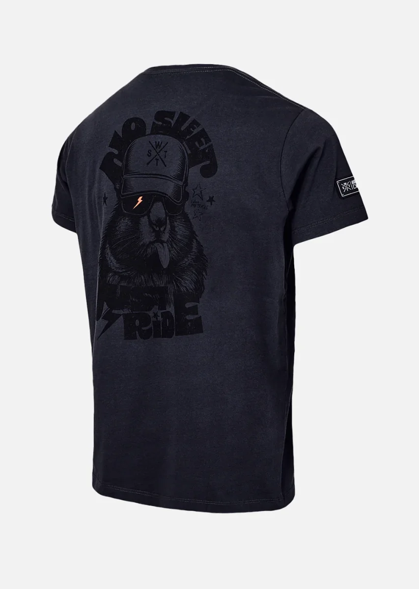 Le t-shirt Overmint Gris Anthracite mise sur l’élégance discrète tout en cultivant une vraie personnalité. Sa teinte gris profond apporte une base sobre, facile à associer, tandis que l’arrière réserve une surprise visuelle percutante : un personnage fun au look de rider urbain, accompagné du mantra iconique “No Sleep Just Ride”. Une façon originale de s’affirmer sans en faire trop.