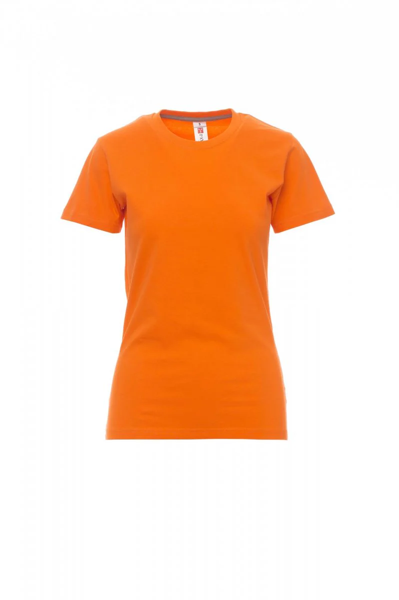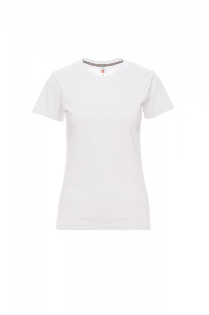Tee-shirt cintré pour femme, encolure ras le cou et manches courtes, col en bord côtes mixte spandex de 1,5 cm avec couture rabattue sur le devant, ruban de renfort d’épaule à épaule dans couleur en contraste sur le col, coutures stretch, couture latérale Composition 100% COTON Aspect JERSEY Poids 190 GR/MQ