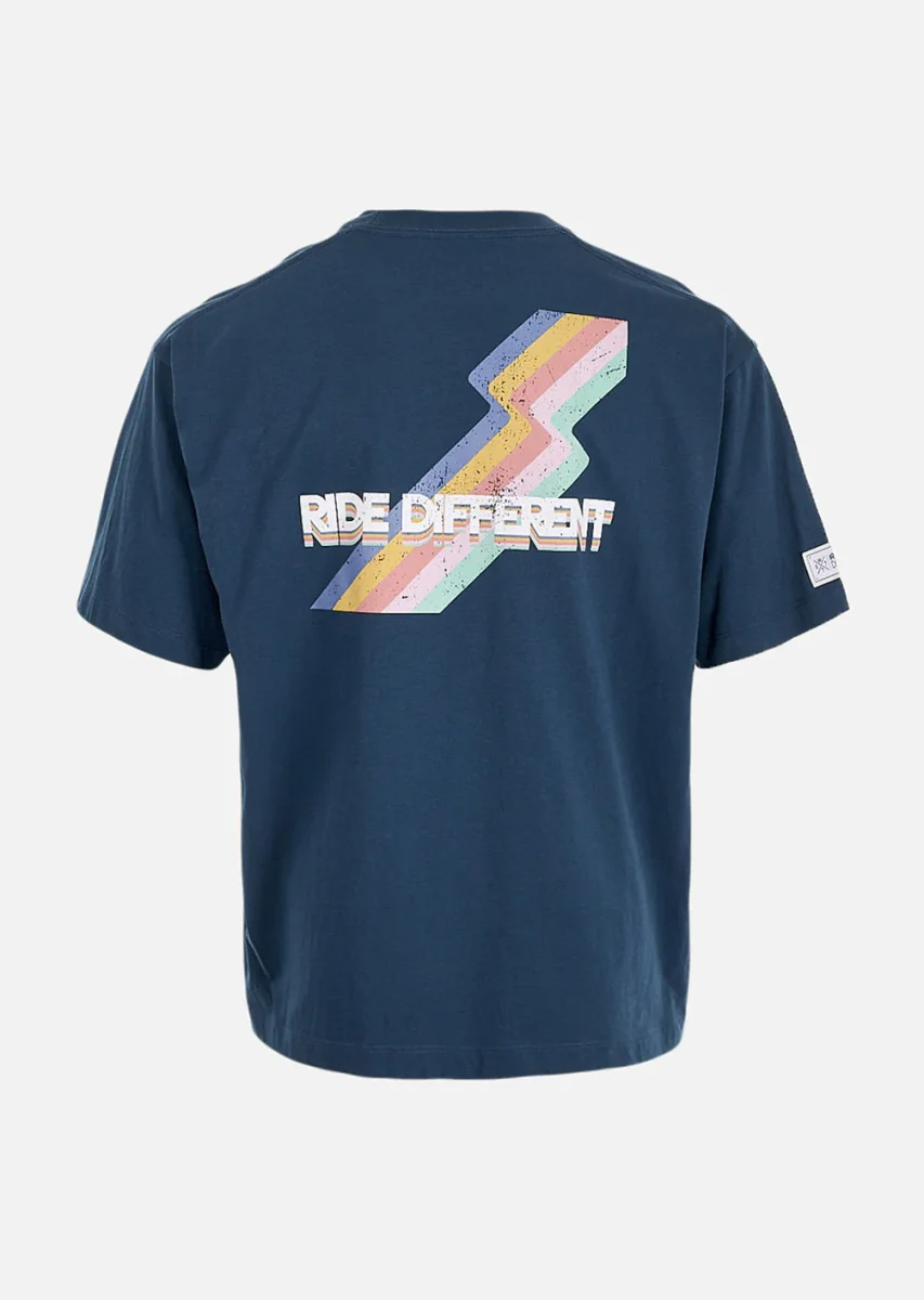 -Impression : Design vibrant en forme d’éclair arc-en-ciel sur l’arrière et message « Ride Different » inspirant.