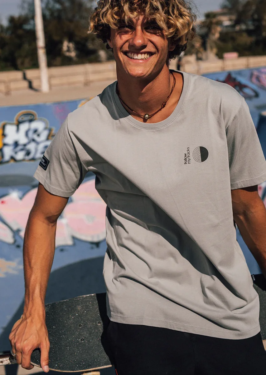 Le t-shirt Tracks Gris Carbone se démarque par son équilibre entre minimalisme et expression visuelle forte. Le contraste entre la base grise et l’imprimé rose/orangé crée une vibe urbaine inspirée par les grands espaces.