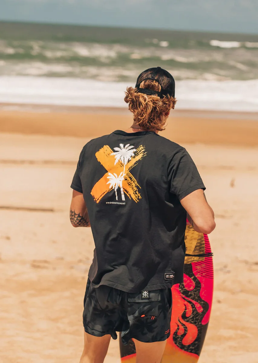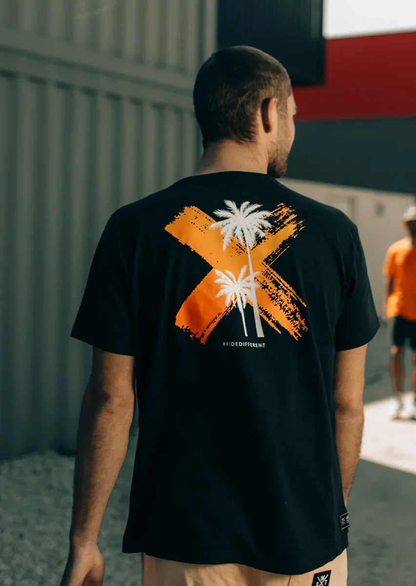 Il vous donnera envie de partir en vacances, voici le tee-shirt Palm Gris Foncé. Ses palmiers et sa croix de couleurs dégradées orange fluo et jaune ne peuvent que vous donner l’envie d’aller à la plage. En plus d’être stylé, il est respectueux de l’environnement grâce à sa matière 100% organique. Sa matière est également respirante, il sera donc plus plaisant à porter lors de vos séances. Le logo WATTS blanc sur le devant et le slogan Ride Different sur le dos le rend encore plus tendance. Pratique et esthétique, vous ne voudrez plus l’enlever !