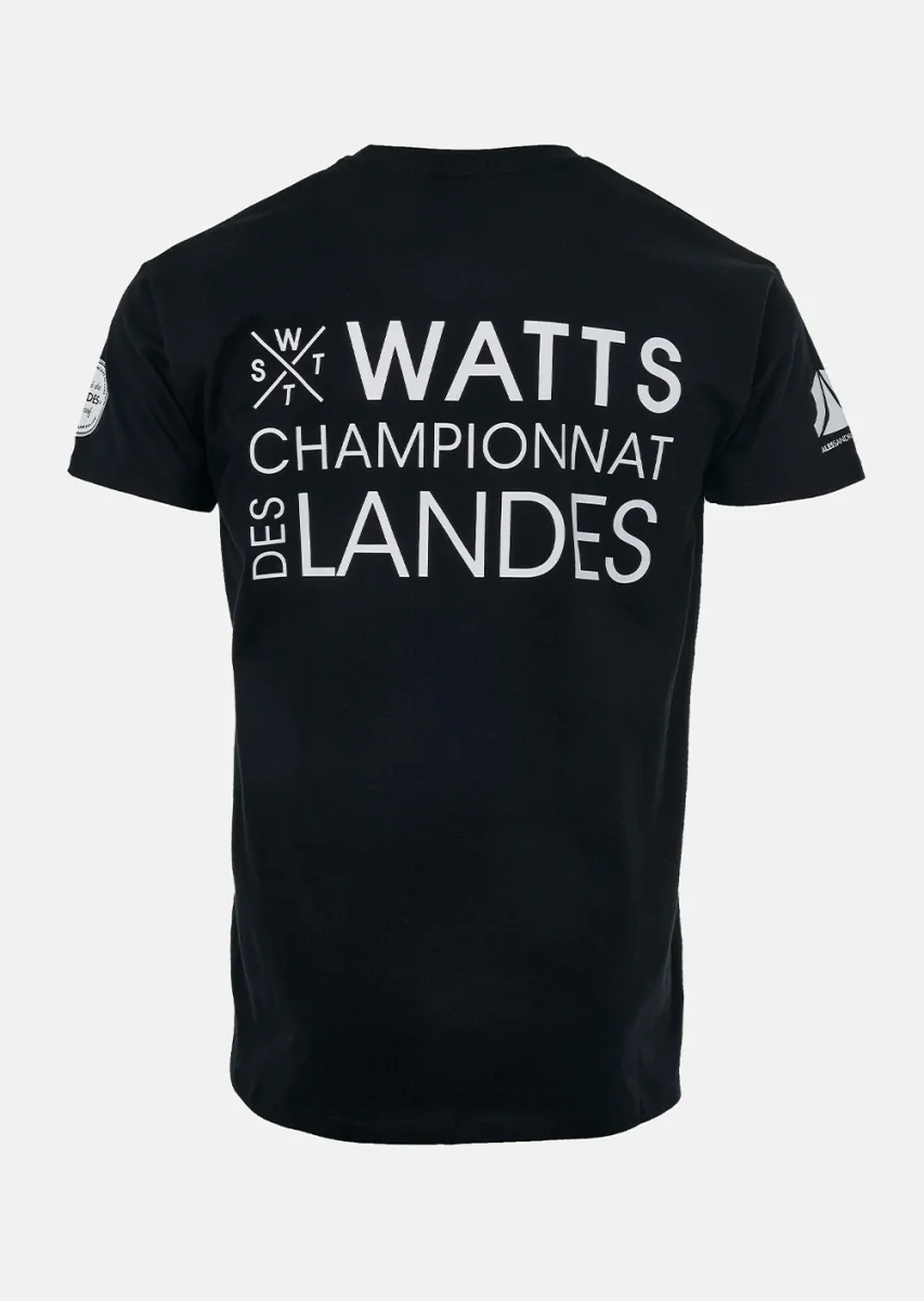 Découvrez le tee shirt Tyde Noir en collaboration avec le Championnat des Landes. Respectueux de l’environnement et très doux, il est composé de coton 100% biologique. Idéal, il sera parfait pour toutes vos activités sportives ! Il est stylé grâce à ses détails blancs tels que le logo WATTS sur le devant ou encore les logos sur le côté. Alors si vous êtes un adepte de surf ou bien de tout autre sport nautique, ce tee shirt est fait pour vous !