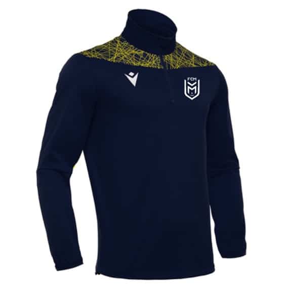 1/4 zip renversé avec curseur autobloquant Poignet en lycra Bas avec cordon Texture sublimatique sur inserts sur épaules sur front et sur dos