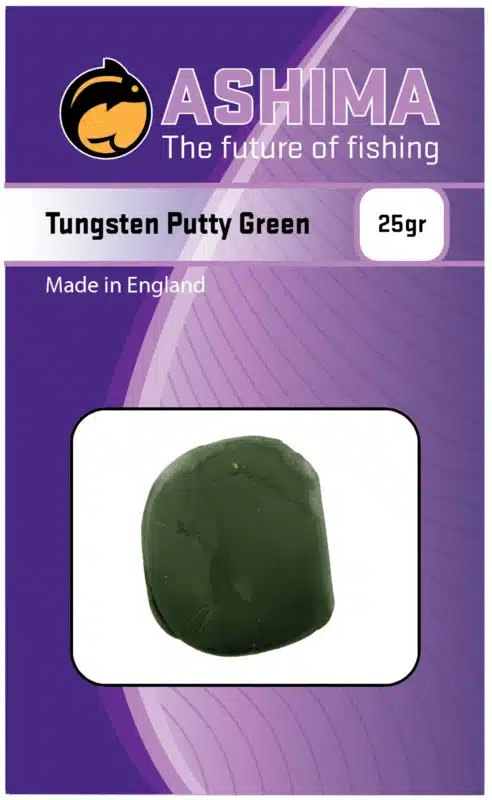 Le mastic Ashima Tungsten a la propriété idéale de rester sur les lignes humides. Lorsque vous utilisez ce produit par temps froid, il est important de le réchauffer dans vos mains pendant un moment afin qu’il soit plus facile à utiliser. Le mastic de tungstène est disponible en vert et en marron. Il y a 25 grammes de pate de tungstène dans un emballage.
