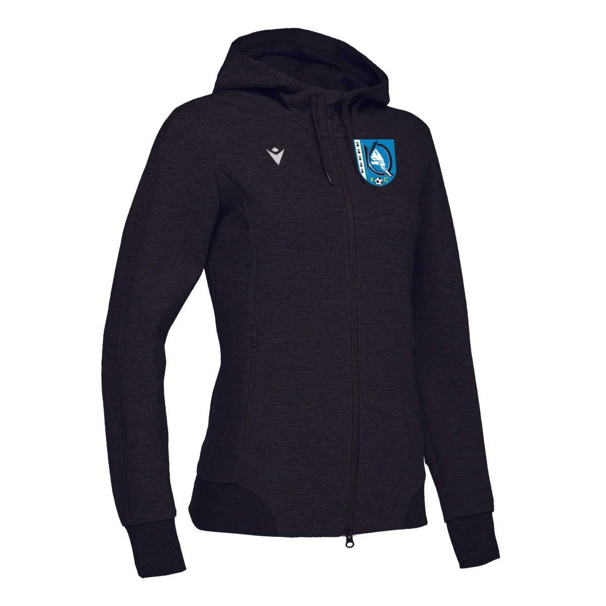 Veste à capuche femme LYRE, Macron. 65% coton 35% polyester, zip noir renversée avec curseur autobloquant, poches avec zip autobloquant, capuche sans doublure, poignets et bandes en bords côtes, logo inclus.
