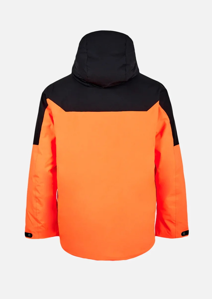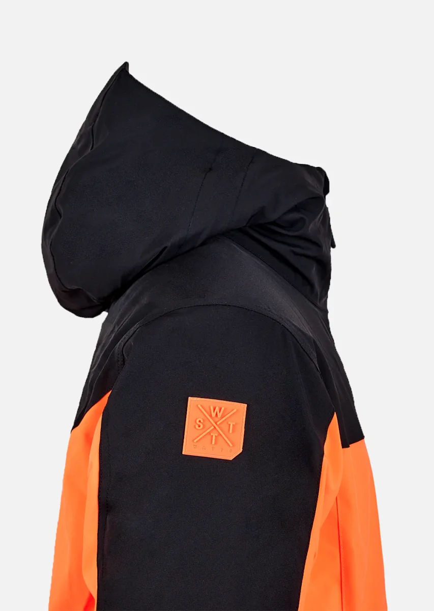 Coutures thermosoudées (épaules, capuche, encolure), zips étanches, capuche 3 panneaux ajustable, poignets réglables, poches zippées stratégiques (dont une pour le forfait) : chaque détail est pensé pour que vous restiez concentré sur votre ride.