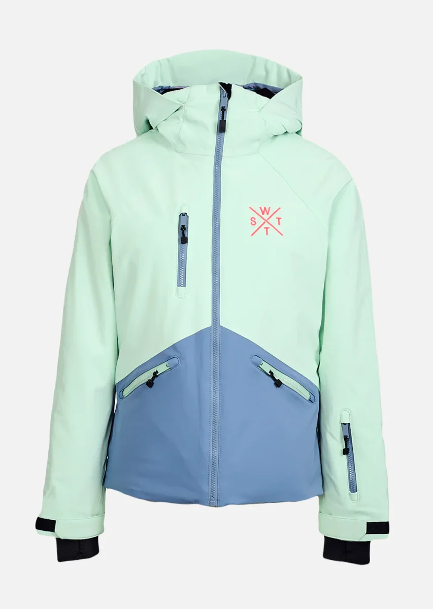 La veste X-PEAK séduit par son Vert Clair lumineux et apaisant, associé à un bleu profond et des détails corail qui réveillent l’ensemble. Inspirée des forêts enneigées et des lacs glacés, cette veste affiche un design audacieux et graphique qui s’intègre parfaitement à l’univers de la montagne.