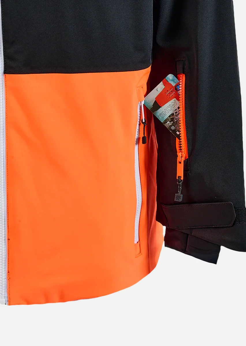 Pensée pour les riders qui enchaînent piste, bords de domaine et zones encadrées, la veste de ski X-Temper Noir et Orange Fluo combine ce qu’il faut de sobriété et d’impact visuel.