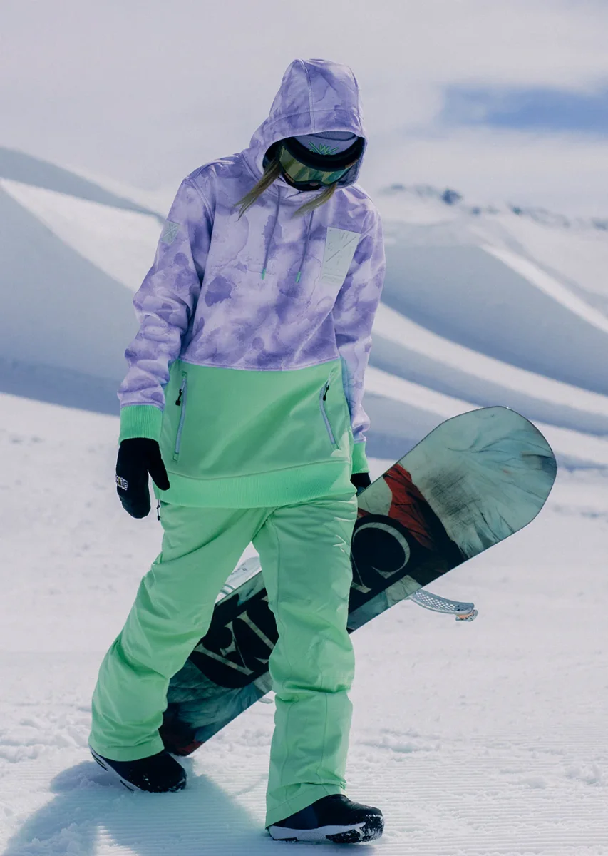 Sous son design inspiré du streetwear, cette softshell cache une vraie technologie outdoor : membrane 10K/10K Dupore-X® 4-Stretch, doublure micropolaire chaude, tissu déperlant et respirant. Que ce soit sur les modules du snowpark, en splitboard ou pour chiller après la ride, elle reste un allié de choix.