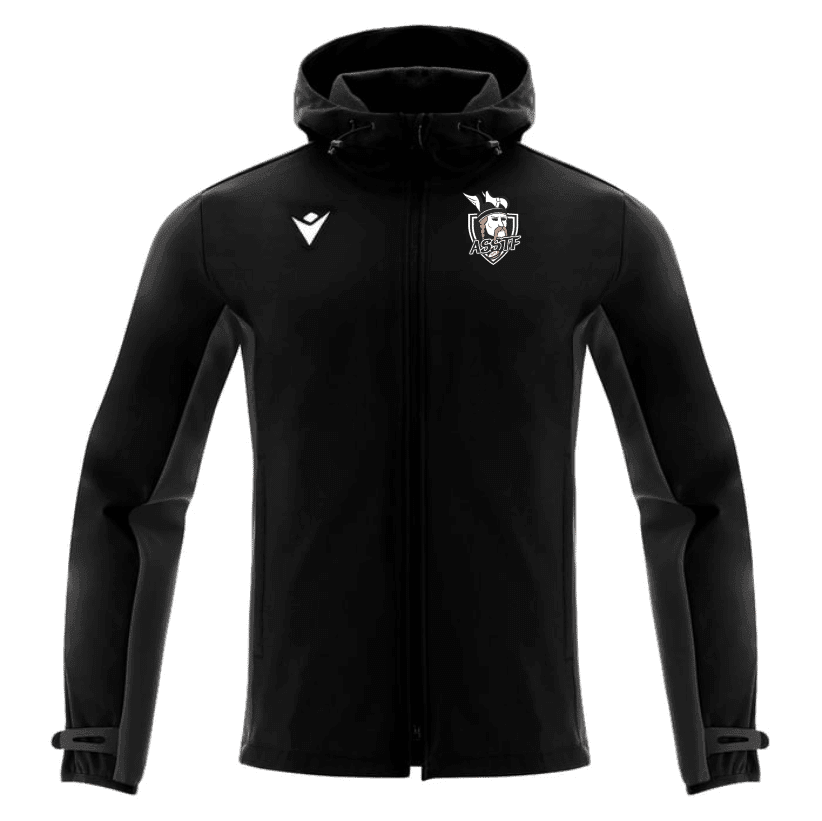 Veste en soft shell, tissu coupe-vent. Fermeture à glissière centrale complète en nylon, inversée et avec curseur autobloquant. Poches latérales avec fermeture à glissière. Cordon coulissant sur la capuche et le bas pour régler l’adhérence. Bas des manches en Lycra avec fermeture en velcro et brandebourg. Empiècements ton sur ton sur les côtés et sous les manches.